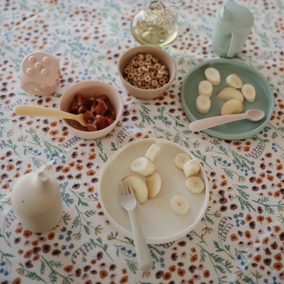 Тарілка з присоскою - це незамінний елемент застави, коли навчитися їсти себе. Присоска забезпечить стабільність тарілки на столі, мінімізуючи бруд та можливість витягнути її на підлогу. Їжа силікон, з якого зроблена тарілкою, дозволяє безпечно нагрівати їжу безпосередньо на тарілці, не побоюючись, що вона буде занадто гарячою для маленьких пальців. Тарілки доступні в прекрасних природних кольорах, до яких можна легко відповідати Mushie Bib, а також іншим елементам посуду, таких як столові прибори або безкоштовно чашка;