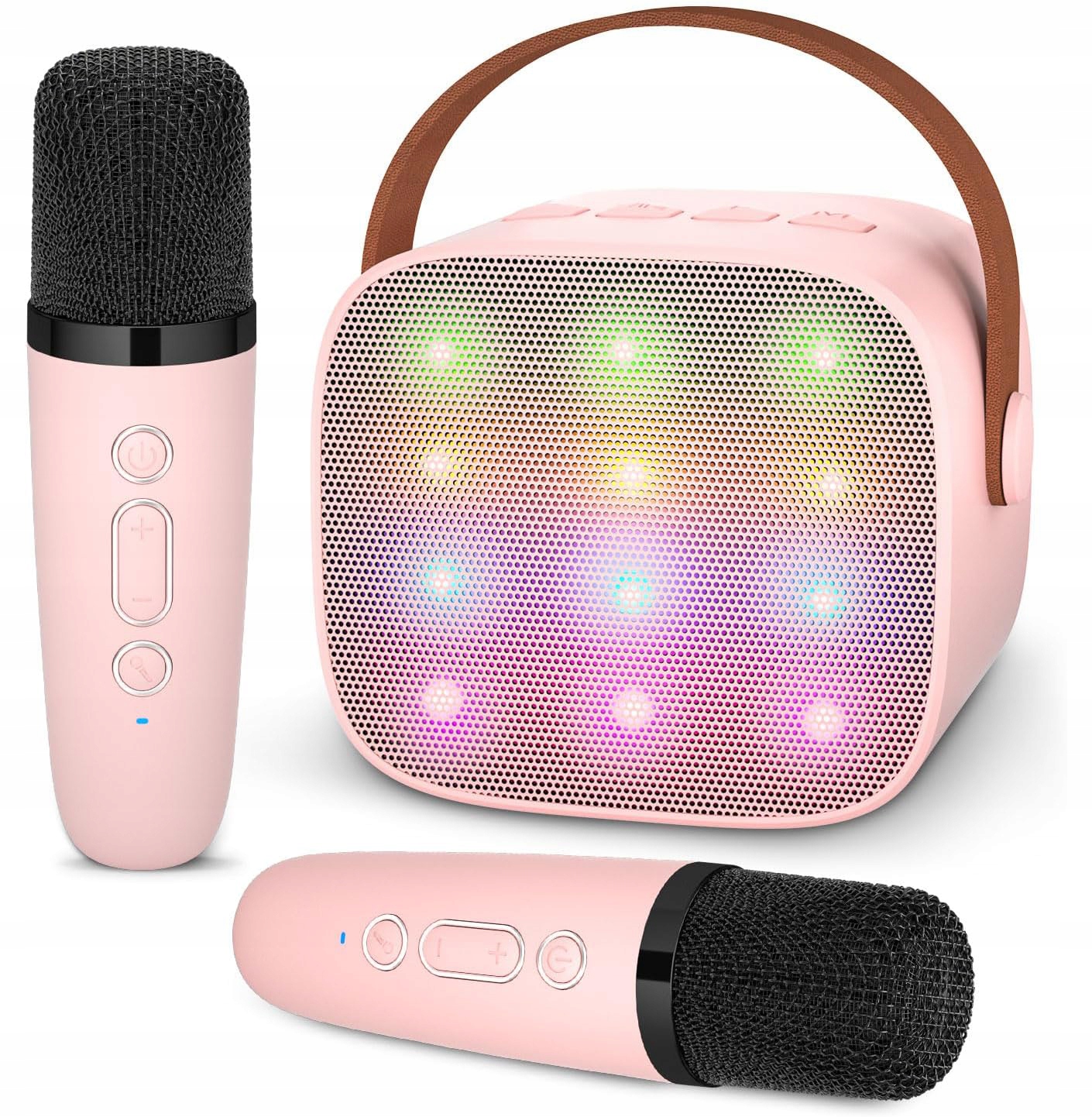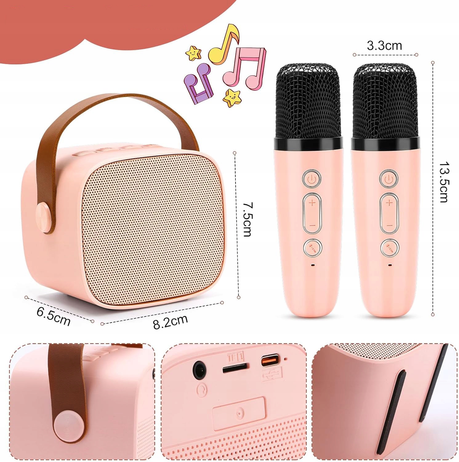 🎙 【【високоякісна машина караоке】 міні -машина караоке оснащена вдосконаленою технологією та відмінною якістю звуку, дивовижним обсягом та чистим звуком. Він також оснащений двома мікрофонами, завдяки якому двоє дітей чи дорослих можуть співати та грати разом, створюючи легкий дует. Він також має зручну функцію одного клацання, що усуває оригінальний звук від музики, що дозволяє повністю насолоджуватися радістю співу. Ви також можете використовувати навушники для прослуховування власного прекрасного голосу.