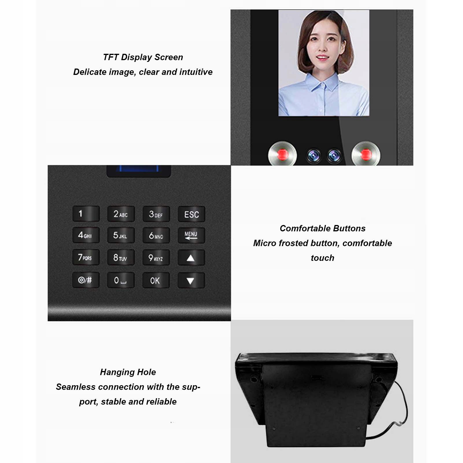 Функція:1. Кілька режимів: ця машина для відвідування забезпечує розпізнавання обличчя, сканування пальців, радіочастотну ідентифікацію та механізми перевірки пароля, автоматично розраховуючи години роботи співробітників.
