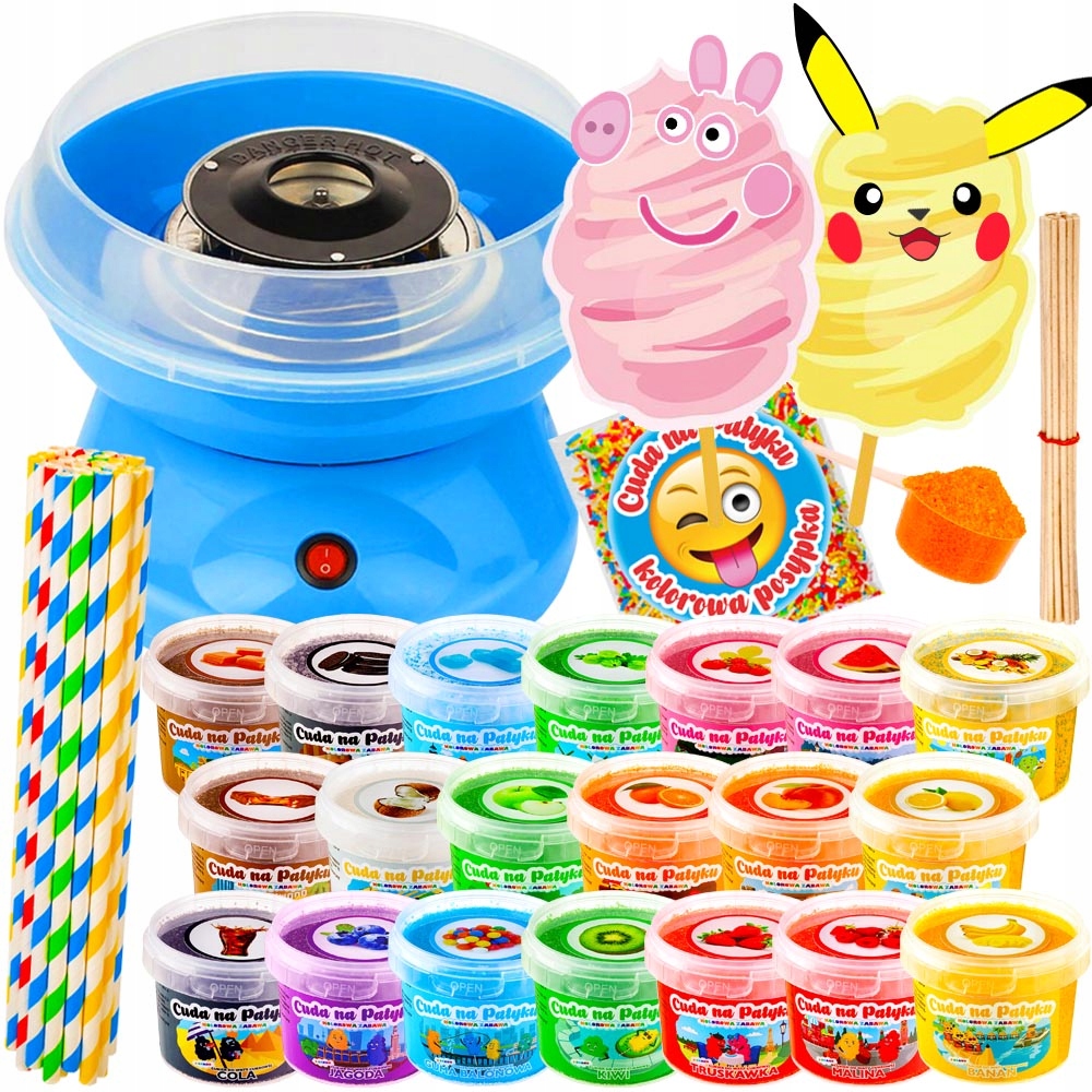 Набір машини для цукрової вати + кольоровий цукор + палички + мірна чашка + їстівні наклейки