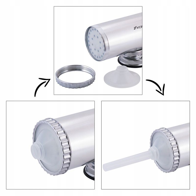Набивка виготовлена з алюмінію, має присоску та ручку для прикручування до стільниці.