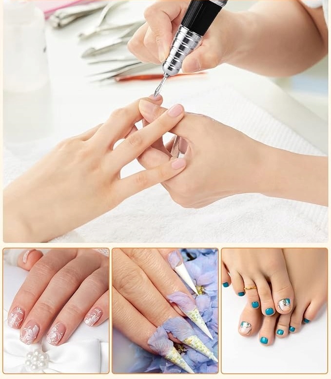 - Багаторазове використання: видалити напівперманентні лаки нігтів, гель для нігтів, акрилові нігті та штучні нігті; різання натуральних нігтів, домашніх тварин домашніх тварин; Цей електричний файл нігтів також підходить для різьблення, гравірування, шліфування, шліфування, полірування підходить для приватного, мобільного та професійного використання в студії. Сучасний дизайн, безпечний, делікатний, простий у використанні та ефективні.