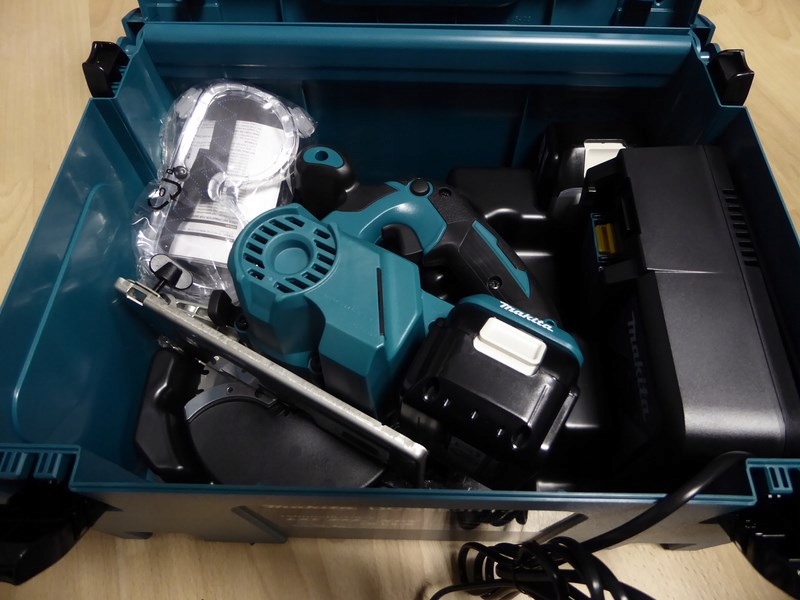 - Поставляється в кейсі MAKPAC з двома батареями BL1850B (18 В / 5,0 А·год) і зарядним пристроєм