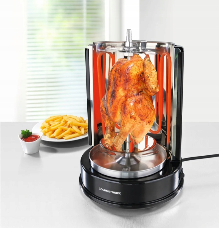 Універсальний і ефективний гриль для приготування різноманітних м'ясних страв. Ідеально підходить для домашнього приготування шашликів, гіросів, курки, баранини та багатьох інших страв.