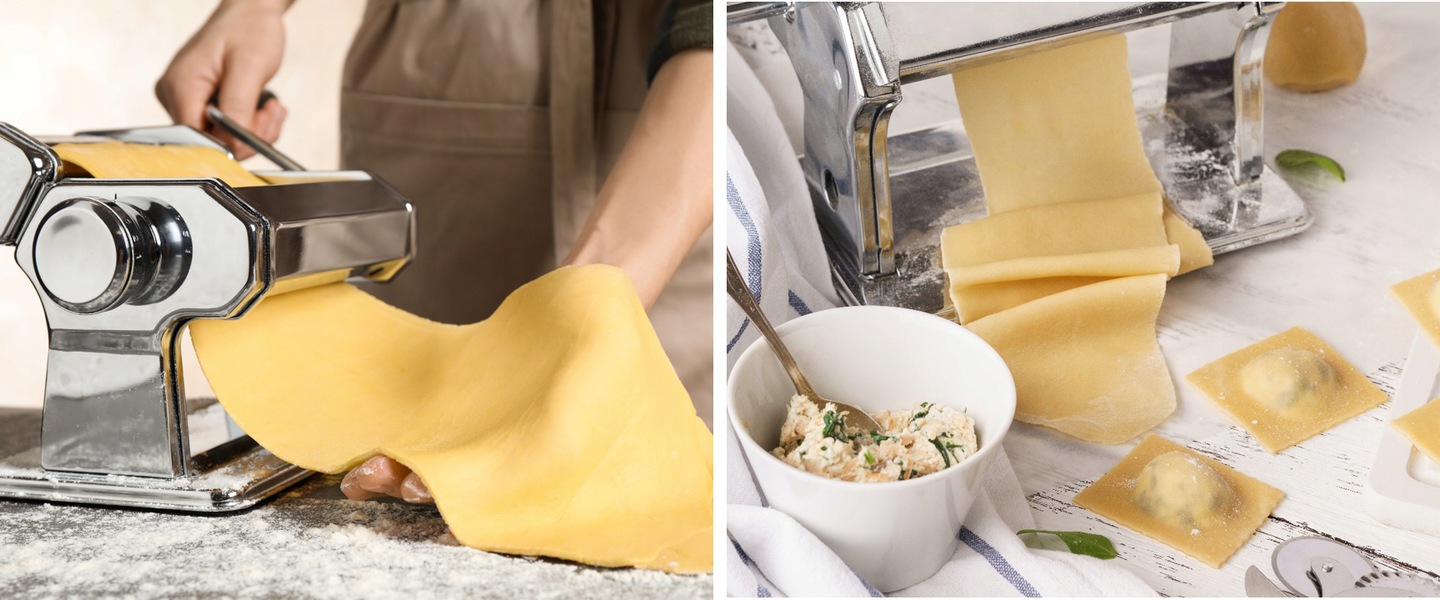 ⬜ ЛАЗАНЬЯ - основна частина машини оснащена 9-рівневим регулюванням товщини та валиком для замішування тісто, з якого ми отримуємо готове тісто длялазаньї.