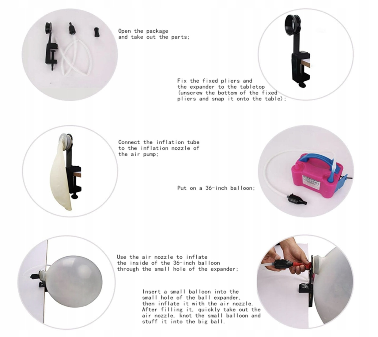 - Металевий матеріал: виготовлена з міцного та високоякісного металу, машина для наповнення повітряних куль включає 1 фіксований стрижень, 1 x надувна трубка та 1 x надувна голка.