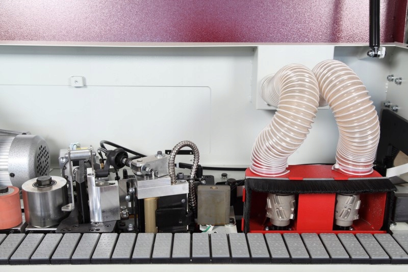 - Приклеювання краю. Гарне зчеплення між краєм і дошкою забезпечується набором із 2 притискних валиків із регульованою силою притиску та правильно налаштованими.