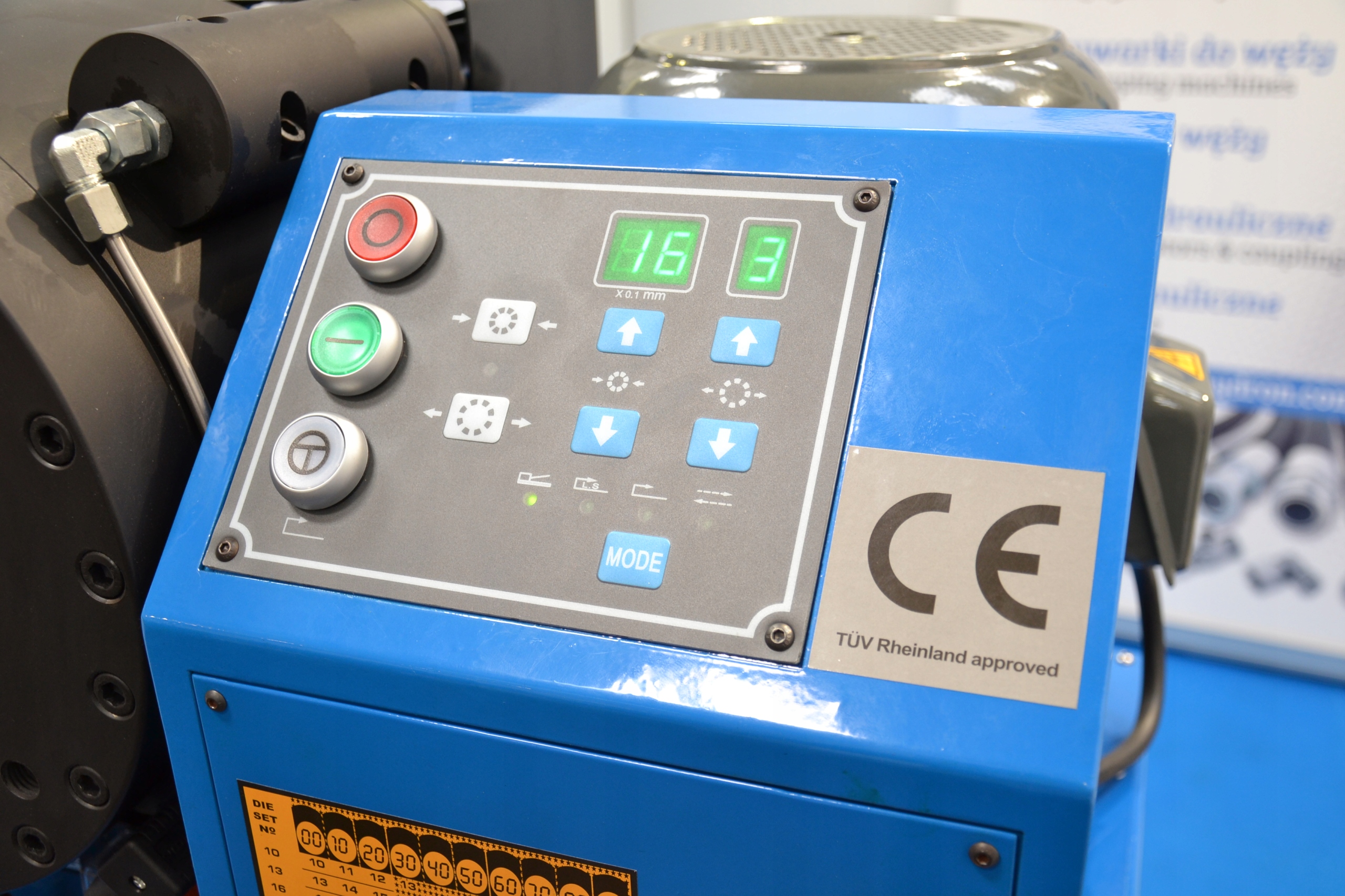 Остання модель обтискного верстата з управлінням цифровий (кнопки замість традиційного мікрометра) Цифрове управління забезпечує кращу та легшу роботу на прес-машині. Цифрова панель полегшує встановлення діаметра затискача - нам не потрібно повертати його мікрометр як у моделі P32q (один повний оборот мікрометра = 1 мм) У моделі P32D просто натисніть +1, щоб змінити діаметр на 1 мм. Користуватися цифровою пресою дуже просто та інтуїтивно зрозуміло. Цей хлопець zakuwarek з кожним роком стає все популярнішим. Сьогодні Більшість обтискних машин у Західній Європі мають цифрове керування. Преса має престижний сертифікат TUV SUD