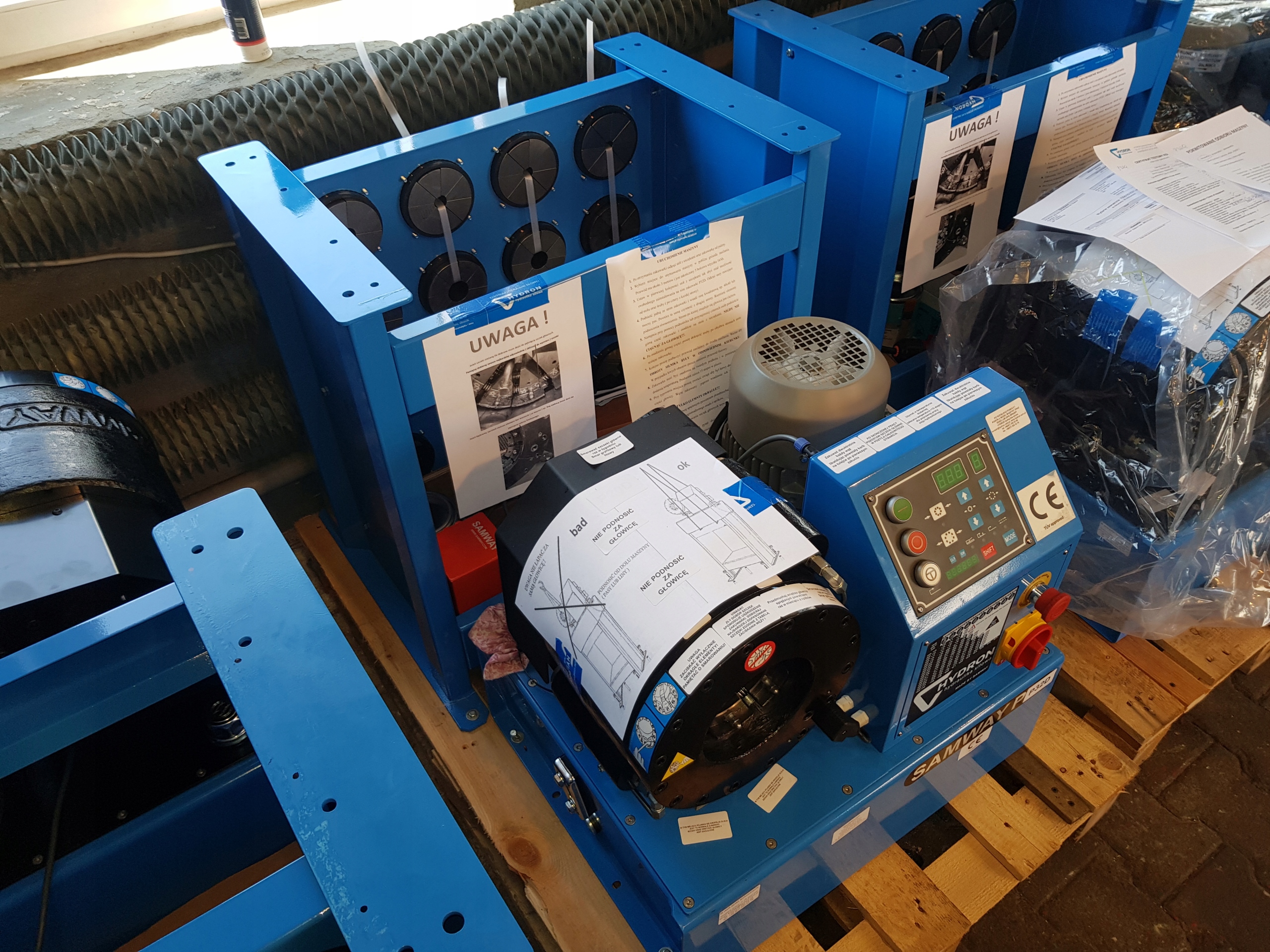 Усі шлангові преси, які ми пропонуємо, заповнені маслом і готовий до роботи. Просто підключіть до джерела живлення. Разом з машиною надаємо пакет документації: письмові інструкції на PL гарантія, сертифікати CE, інструкції з обтиску, інструкції з робочого місця Охорона праці, столи для опресовування, столи для вибору шлангів, столи для вибору різьби, столи з видами конусів, що використовуються в типсах, каталог типсів для шланги. У вартість входить безкоштовний транспорт + виїзне навчання у клієнта.Навчання завершується отриманням іменного сертифікату підтверджувальне навчання користуванню затискним пресом манжети шлангів.