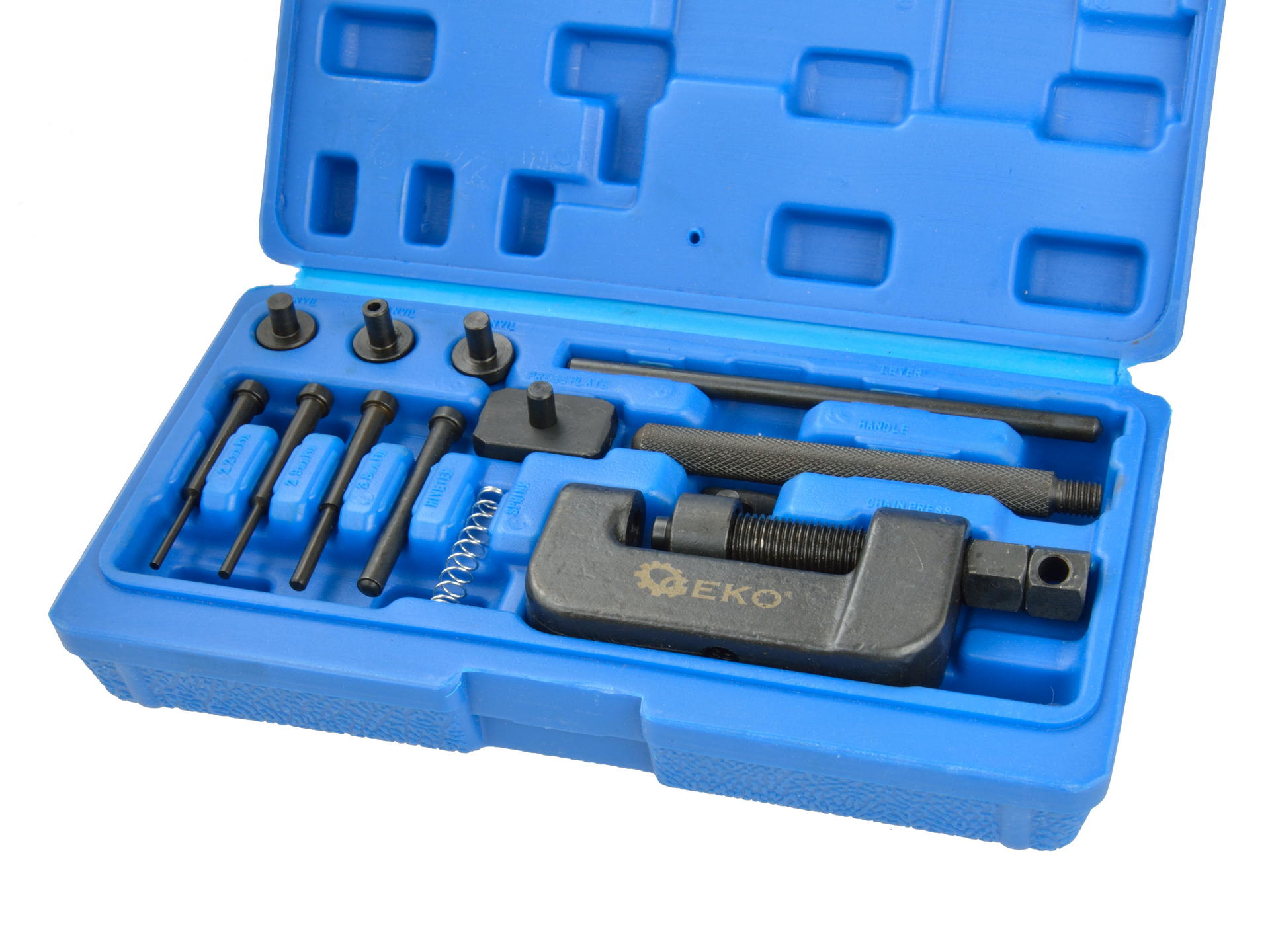 Скручувальна машина для ланцюгів мотоциклів. Призначений для розриву і розриву ланцюгів ГРМ і приводних ланцюгів. Набір корисний у майстернях мотоциклів, велосипедів та автомобілів.
