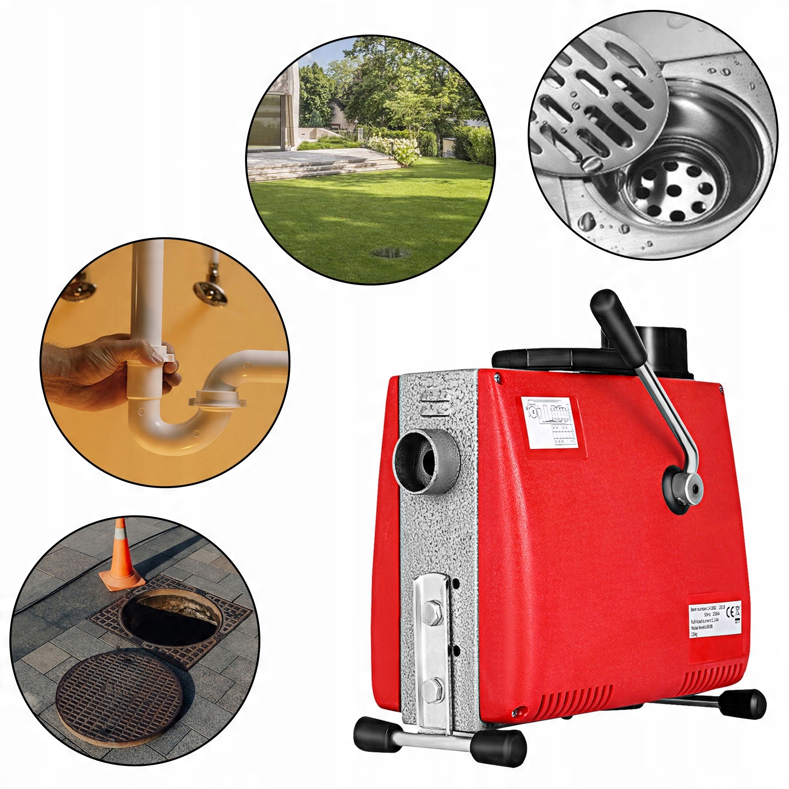 міцний корпус та обробка: ця машина для очищення відтоків користується хорошою репутацією завдяки міцному конструкції. Високоякісна залізна рама продовжує термін служби. Портативна ручка корисна для легкого перенесення. Він здатний до жорсткої роботи та очищає довгі ділянки каналів стічних вод.