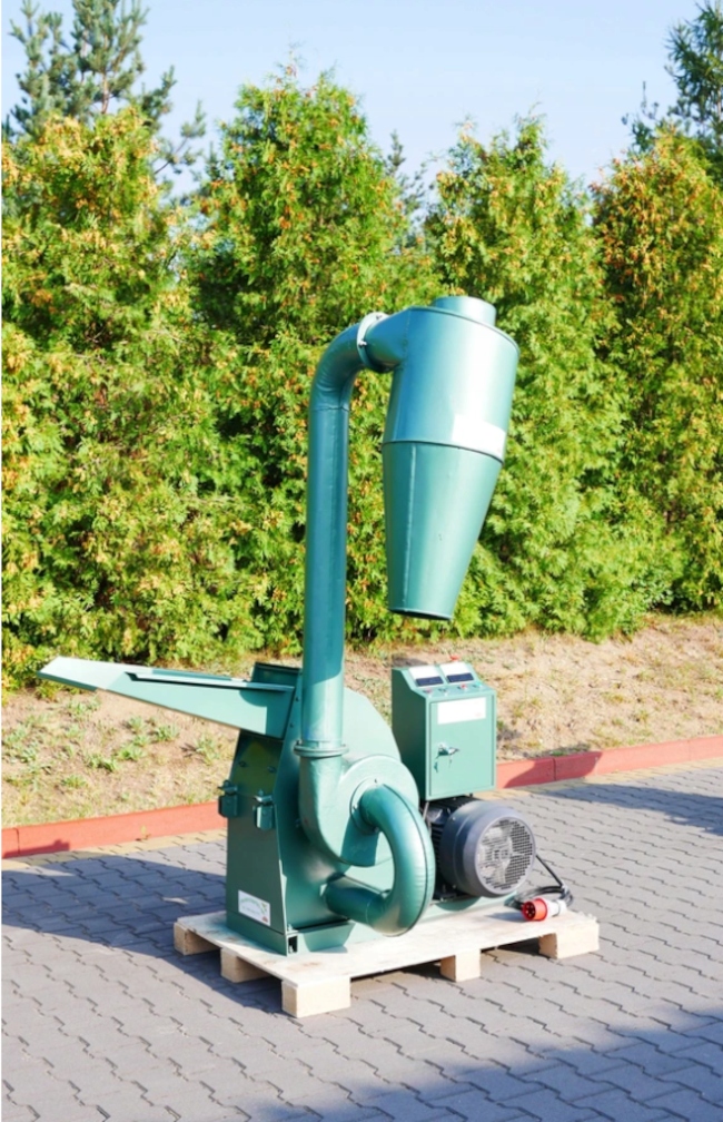 Модель молоткового млина, призначена для обробки деревних матеріалів шляхом їх удару, ідеально готуючи матеріал для гранулювання. Механізм з 16 обертових молотків, що працюють від двигуна потужністю 11 кВт, легко впорається з будь-яким деревним матеріалом фракцією до 5 см. Виготовлений із міцної сталі, він дозволяє працювати в промислових масштабах майже 24 години на добу. Матеріал для обробки млина має форму дуже дрібної тирси, залежно від використовуваного сита 2 або 4 мм (входить в комплект).