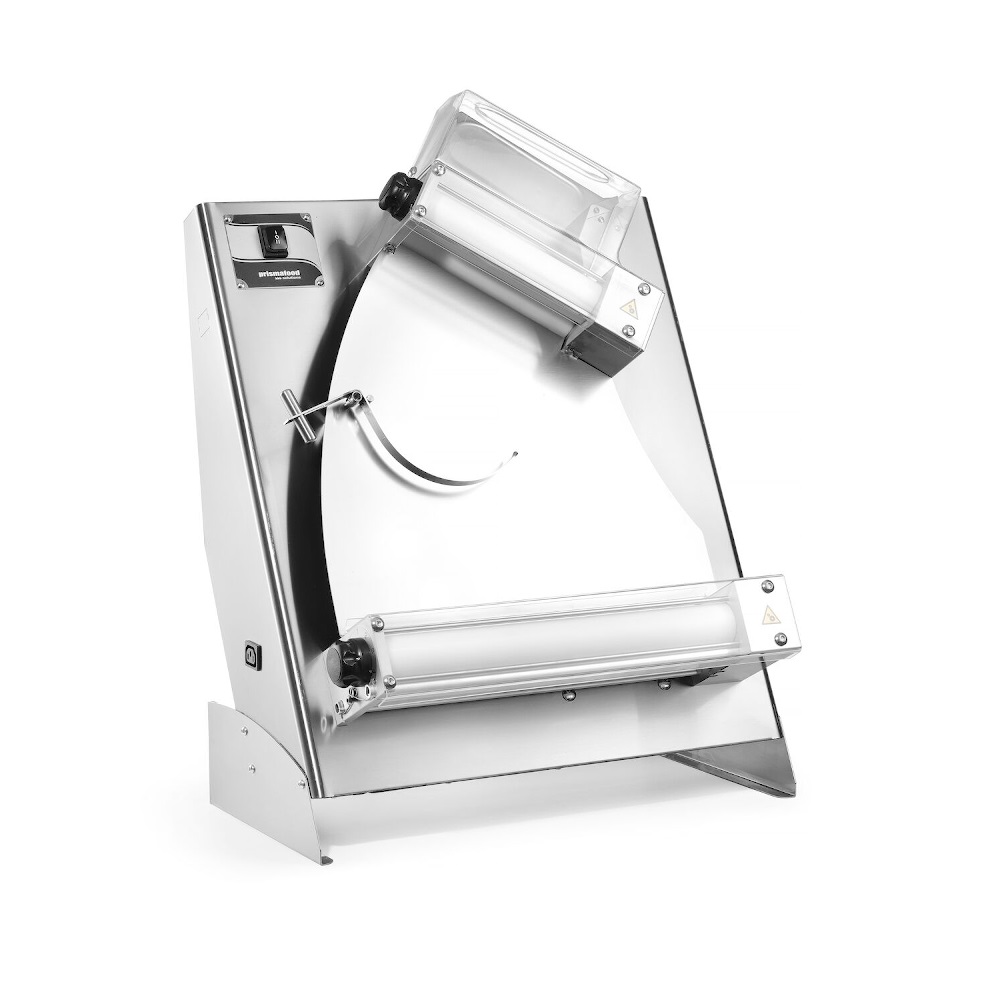 Професійна електрична тісторозкатна машина Prismafood. Ідеально підходить для розкочування холодного тіста для піци, пасти та пельменів, значно прискорює приготування страв. Можливість приготування тортів діаметром від 26 до 40 см. Продукт чудово працює у великих і малих закладах громадського харчування. Ідеально підходить для розкочування холодного тіста для піци, пасти та пельменів. Він не нагріває тісто під час роботи. Значно скорочує робочий час персоналу. З нержавіючої сталі. Дві пари регульованих роликів для встановлення товщини тіста від 0-4 мм і надання йому круглої форми. Окремі кришки роликів для легкої та безпечної роботи.