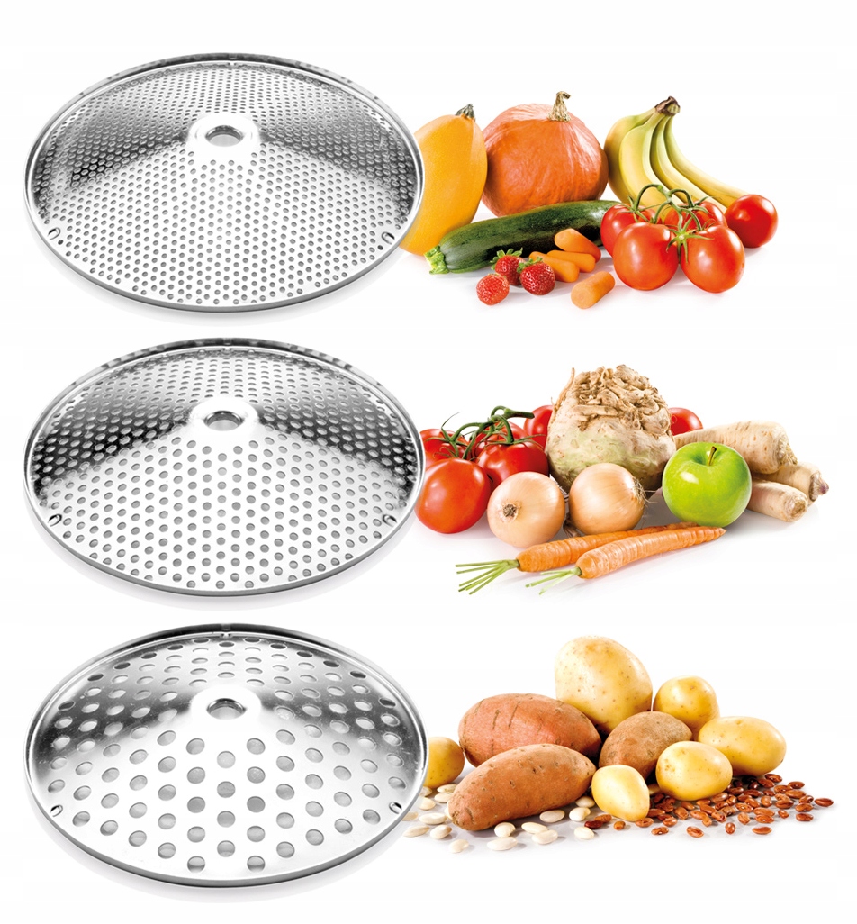 Призначений для легкого та швидкого пюрування овочів і фруктів. Ідеально підходить для приготування пюре і пюре з помідорів, картоплі та інших овочів і фруктів. Оснащений 3 ситечками для пюрування, з лопаткою, що полегшує пюрування великої кількості овочів і фруктів. Склоочисник виготовлений з високоякісної нержавіючої сталі, а лезо - з міцного пластику. Можна мити в посудомийній машині.