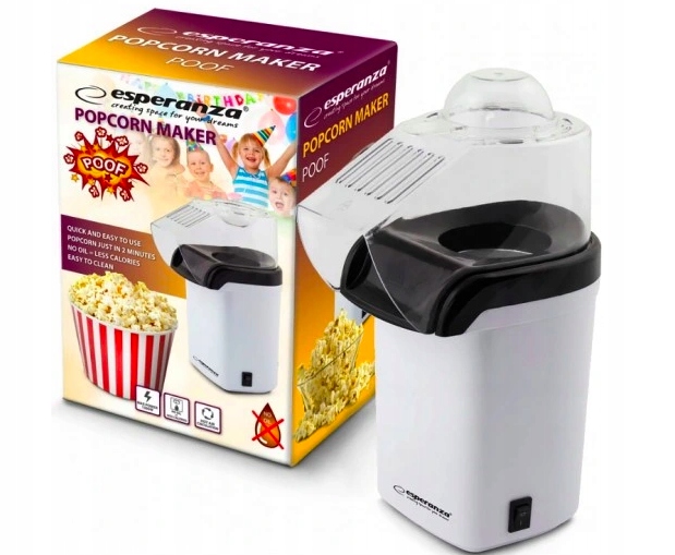 З нашою машиною для виготовлення попкорну Esperanza POOF ви можете приготувати здорову та смачну закуску за 2–3 хвилини.