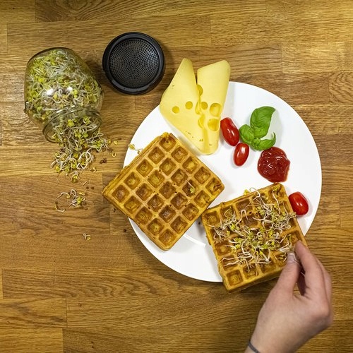 Наш інноваційний пророщувач із поворотною банкою має спеціально розроблену кришку, яка дозволяє вирощувати паростки в банці, нахиленій під кутом приблизно 15°. Завдяки цьому рішенню вода відводиться належним чином, що також забезпечує дуже хорошу циркуляцію повітря під час вирощування. Ви також можете використовувати ситечко для зливання рідини з інших продуктів (наприклад, консервованих овочів та фруктів) або для відділення осаду чи дрібних фракцій. Відкручувальна різьба, розроблена на кришці, сумісна з будь-якою банкою чи іншим посудом із зовнішньою різьбою діаметром 82 мм.