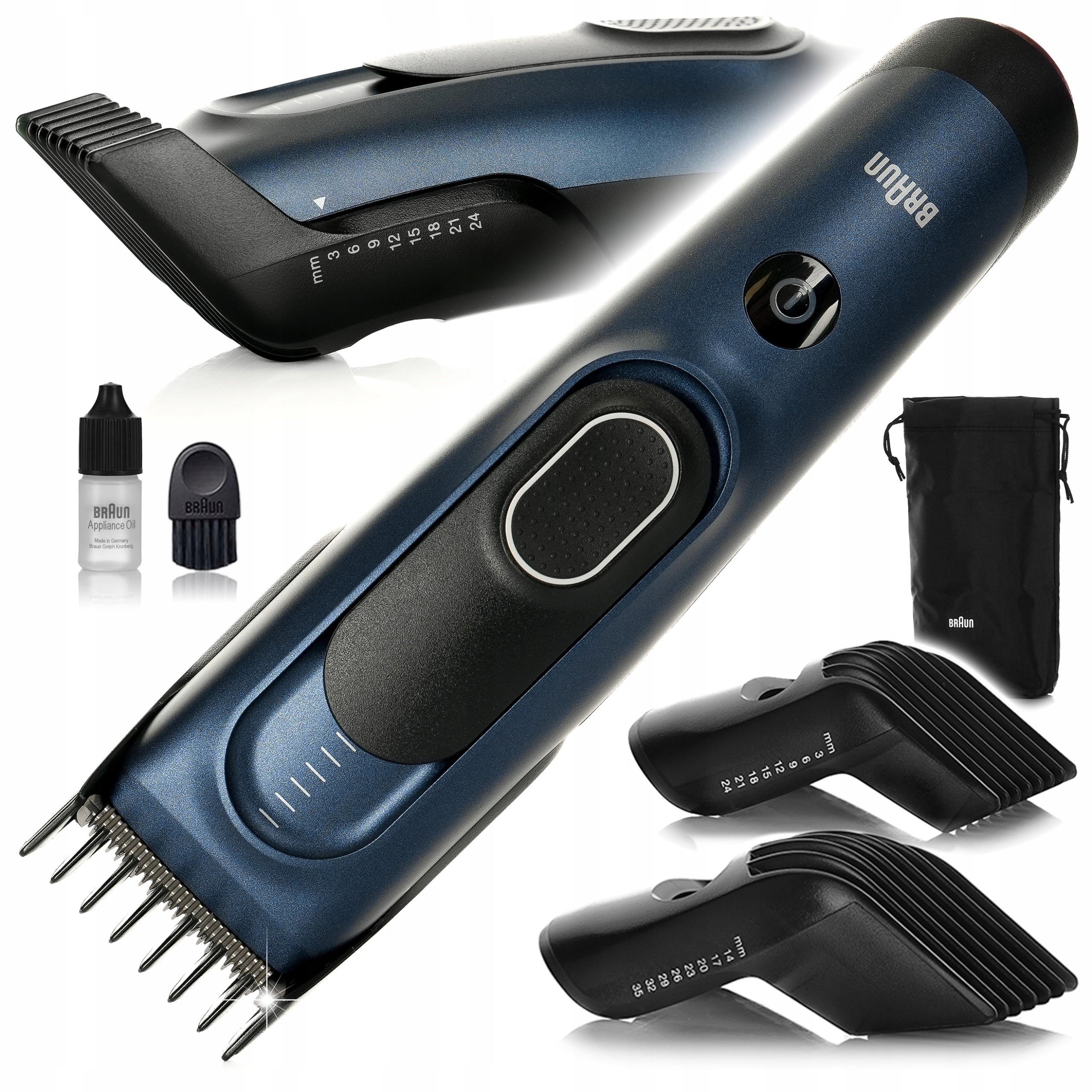 Braun Series 5 HC5350LSB з Saper LifeTime Sharp LifeTime , safetylock , 17 Налаштування довжини (3-35 мм) з 2 гребінцями та різанням без ковпачка на брату. 0,5 мм 50 хвилин бездротової роботи . Ідеально підходить для щоденного різання.