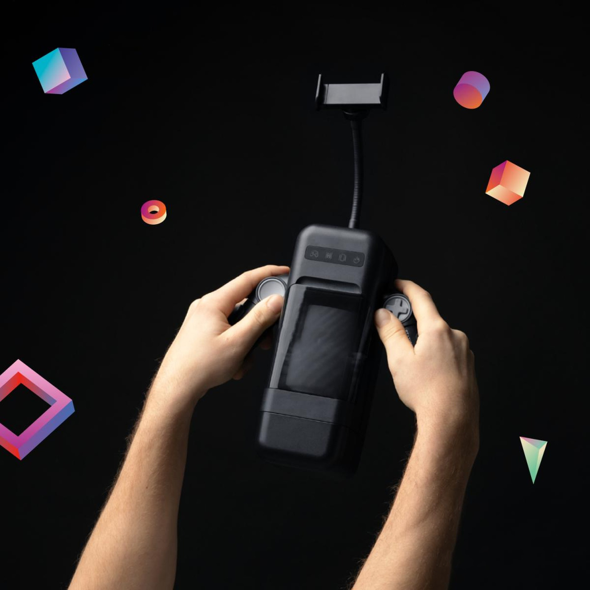 Помістіть свій телефон у знімний тримач телефону, який входить у комплект, відкиньтеся вниз і насолоджуйтесь тим, що пропонує BLOWCAST.