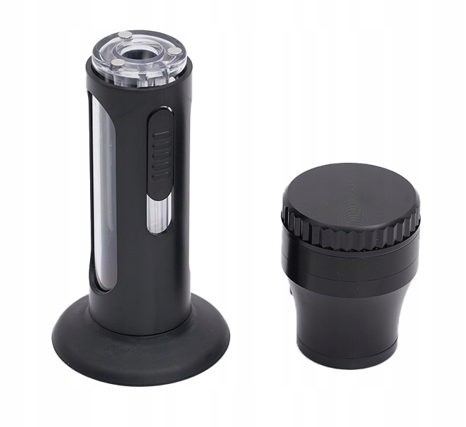 Дві верхні частини вони з’єднані з магнітом і використовуються для подрібнення матеріалу, потім є ситечко і лійка під ними.