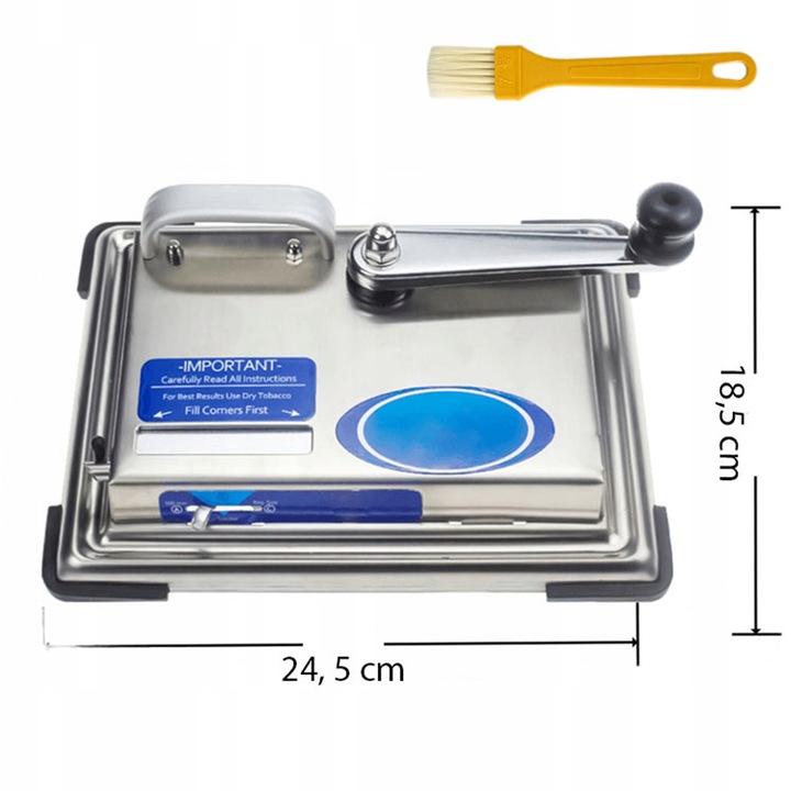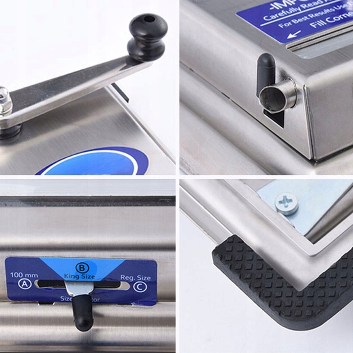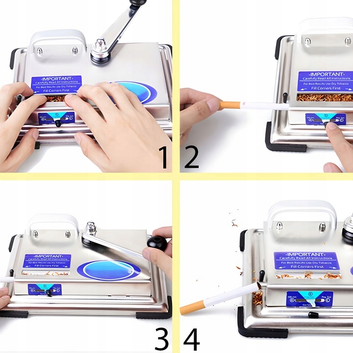 Сигаретна наповнювальна машина — це пристрій, який дозволяє наповнювати тютюном сигарети за допомогою поршневого механізму. Наповнювач дуже простий у використанні. Все, що вам потрібно зробити, це відкрити отвір для тютюну, вставити трубку, заповнити отвір тютюном, встановити довжину трубки за допомогою ручки, повернути ручку машини і у вас є готова сигарета.