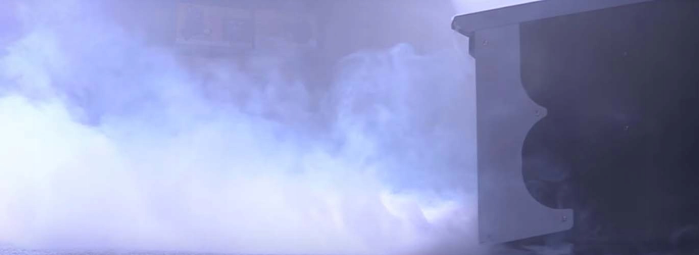 Машина для створення густого туману ICE1800 працює зі стандартною рідиною для розпилення туману та кубиками льоду. Кубики льоду охолодять дим, що виділяється, утворюючи важкий і густий дим, який залишиться на землі.