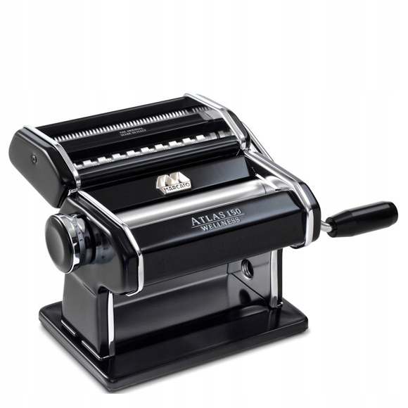 Marcato є провідним виробником обладнання для виготовлення макаронних виробів на італійському ринку. Представлена модель ATLAS 150 має ролики, які дозволяють розкачати тісто, від дуже тонкого 0,2 мм до дуже товстого. Є 9 рівнів регулювання товщини прокату.