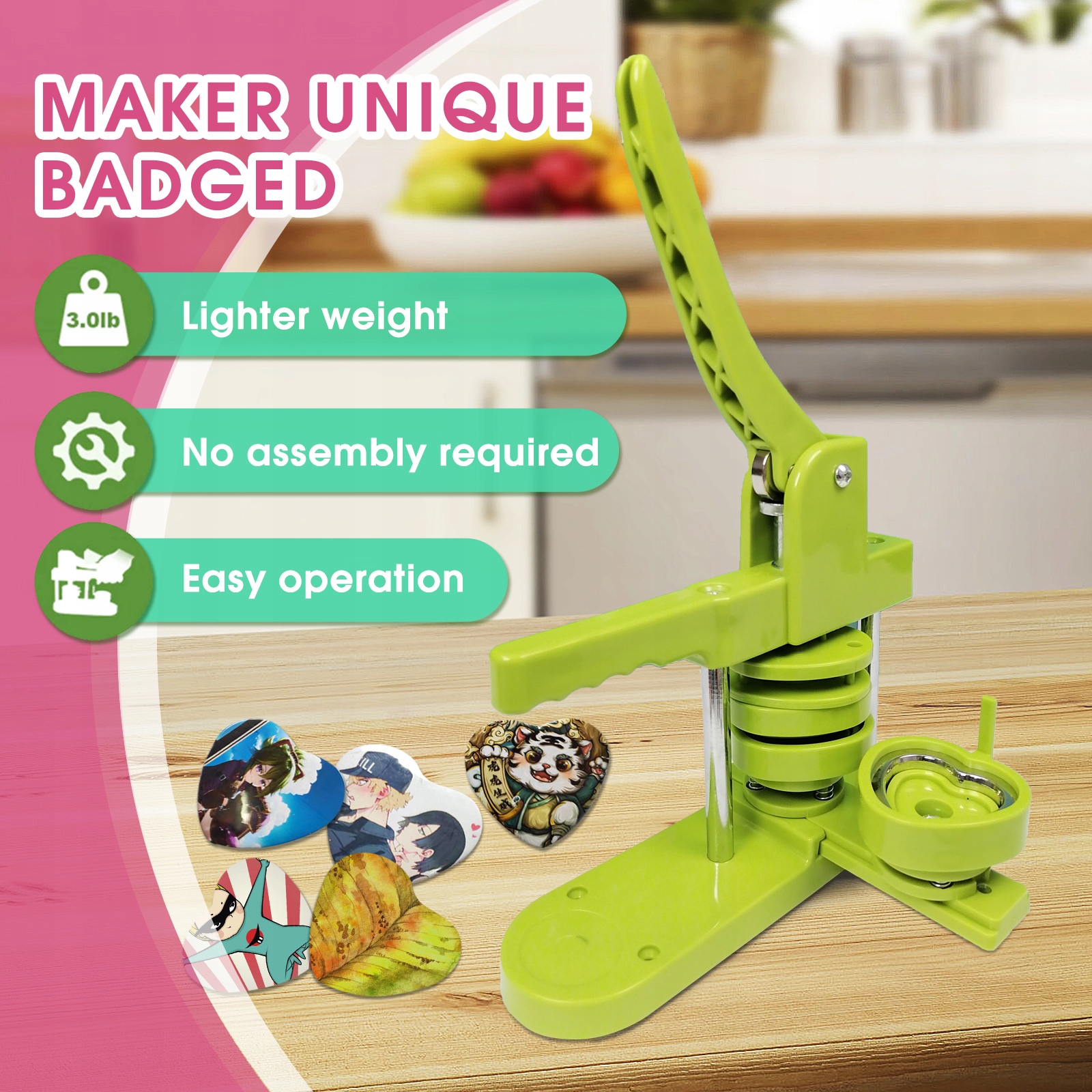 4. Чудовий подарунок: Творець значка може бути чудовим подарунком для ваших дітей, близьких чи друзів як подарунок. Знак для виготовлення значків також може самостійно робити спеціальні значки, особливо придатні для персоналізованих пам'ятних подарунків для туристичних визначних пам'яток, різних конференцій, рекламних акцій, шкіл, громад, підприємств, сімей тощо.