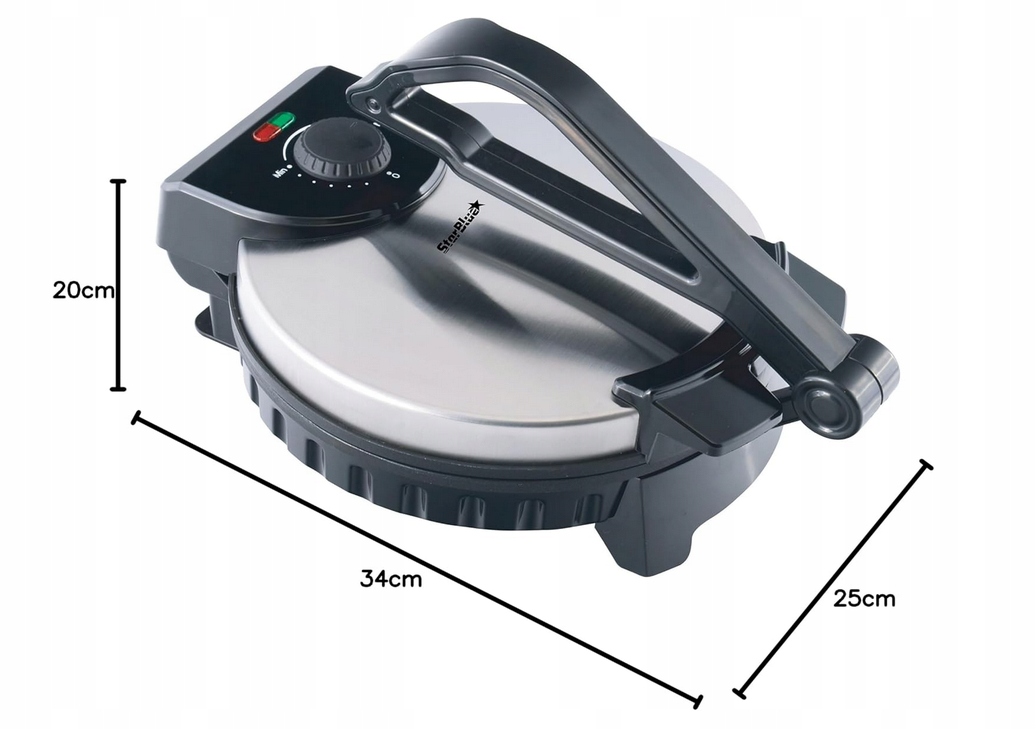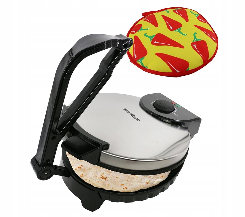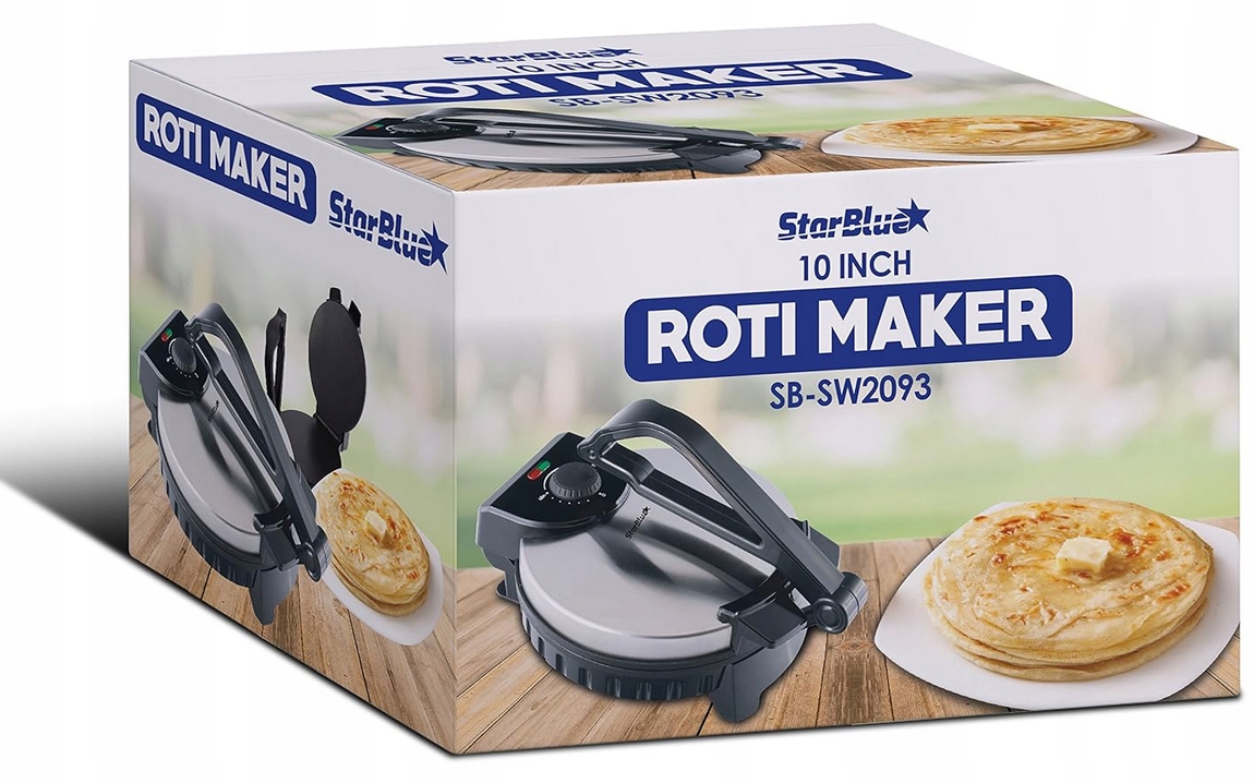 Практична та ефективна електрична машина StarBlue дозволяє швидко приготувати чапаті, коржі, роті, лаваш і млинці діаметром 25 см. Ідеально підходить для дому, фуд-траків і кухонь любителів свіжих тонких млинців. У набір входить безкоштовний підігрівач для млинців, а завдяки адаптеру ЄС, який входить до комплекту, пристрій готовий до використання одразу після розпакування.