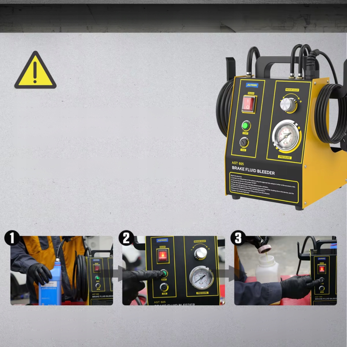 AST605 - це професійний пристрій заміни гальмівної рідини, призначений для майстерень автомобілів та вимогливих окремих користувачів. Завдяки використанню імпульсної технології, Changer гарантує ефективну та безпечну заміну рідини в гальмівних системах, у тому числі в ABS.