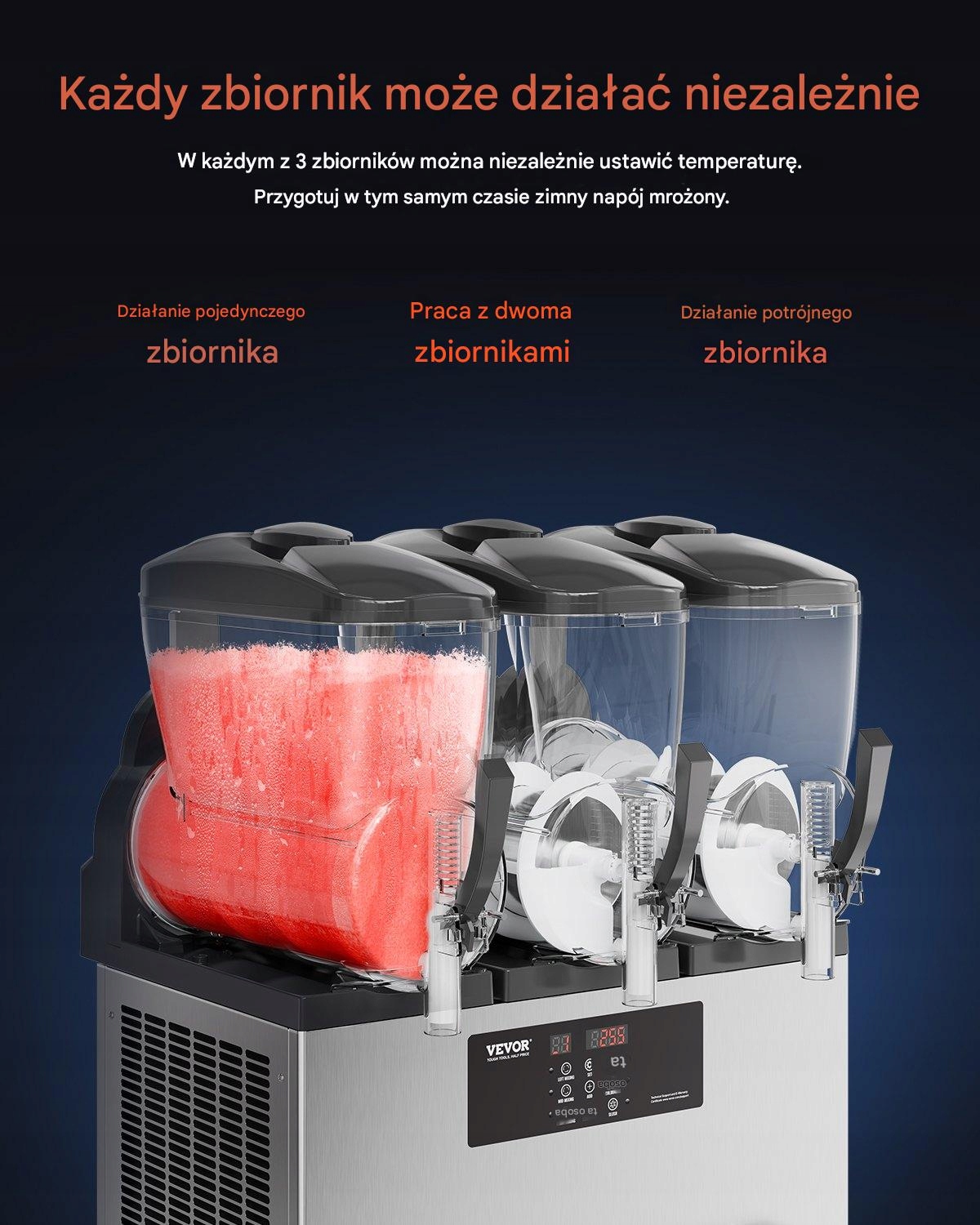- ✅ Незалежні налаштування: кожен резервуар з окремим регулюванням для солодких або холодних напоїв