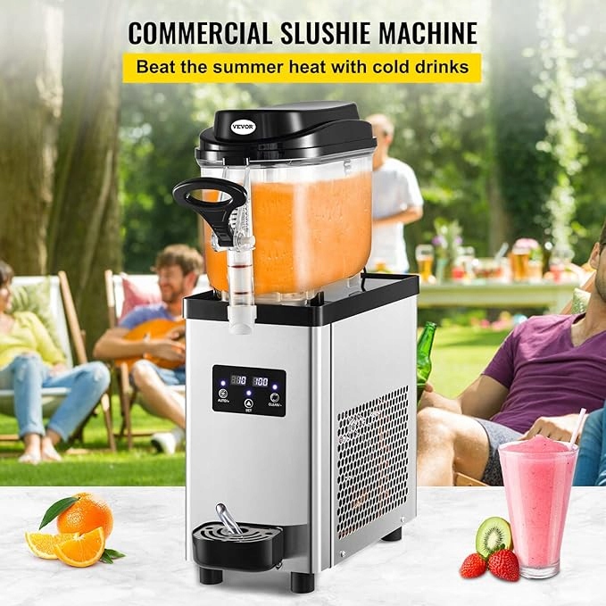 Точне управління та призначений для вас: Коротка панель управління забезпечує легкість використання комерційної машини. Завдяки простому операції на одному дотику у вас буде улюблений заморожений напій, готовий до пити. Два цифрові дисплеї дозволяють швидко перевірити коефіцієнт передач та стан передач. Відбита ручка полегшує операцію, а знімний лоток для крапельної діяльності ефективно запобігає заливці напою. Щоб зберегти зусилля, також доступний режим автоматичного очищення.