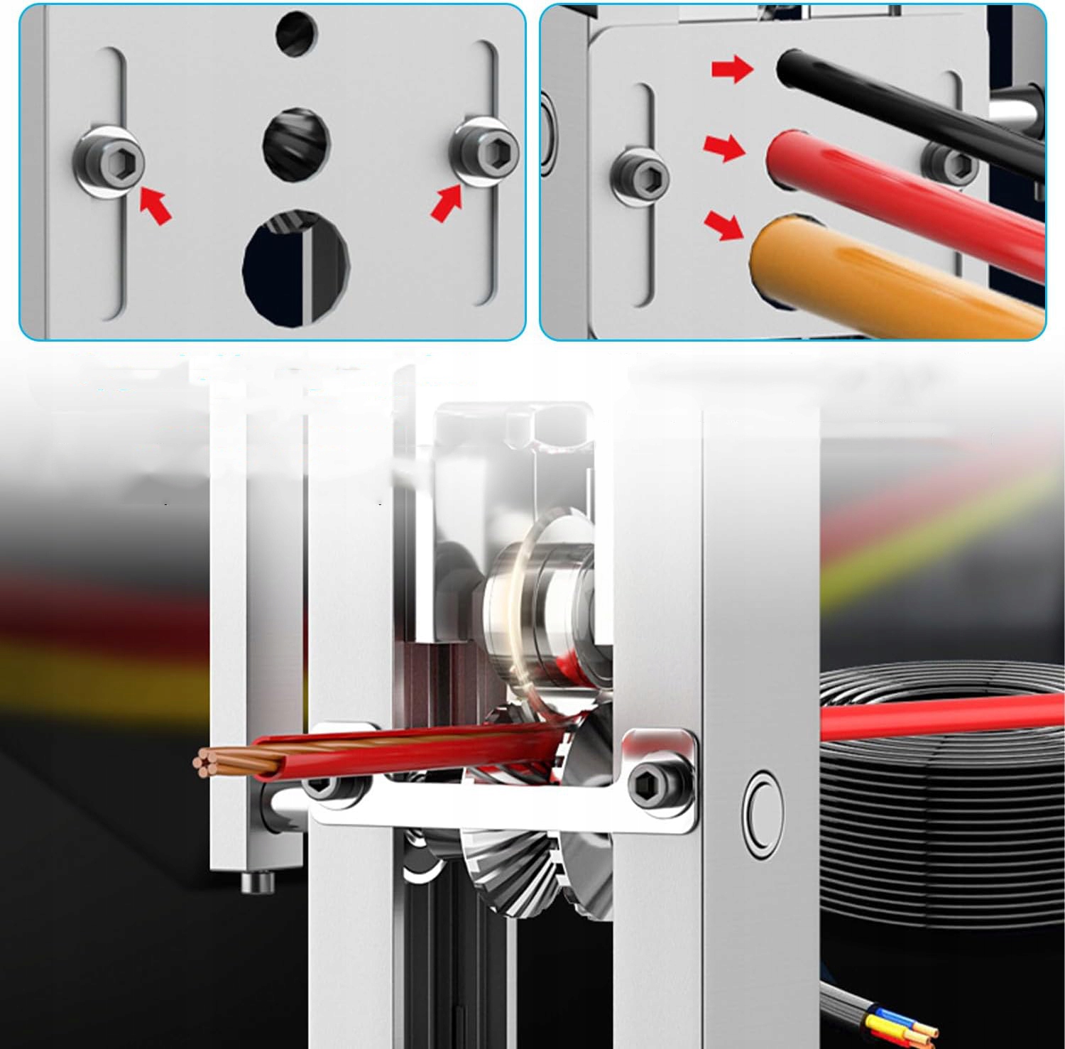 ✔️✔️✔️【Універсальна сумісність】За допомогою регульованої верхньої кнопки ви можете регулювати відстань між лезом і роликом відповідно до різних розмірів кабелю (від 1,5 мм до 25 мм). діаметр).