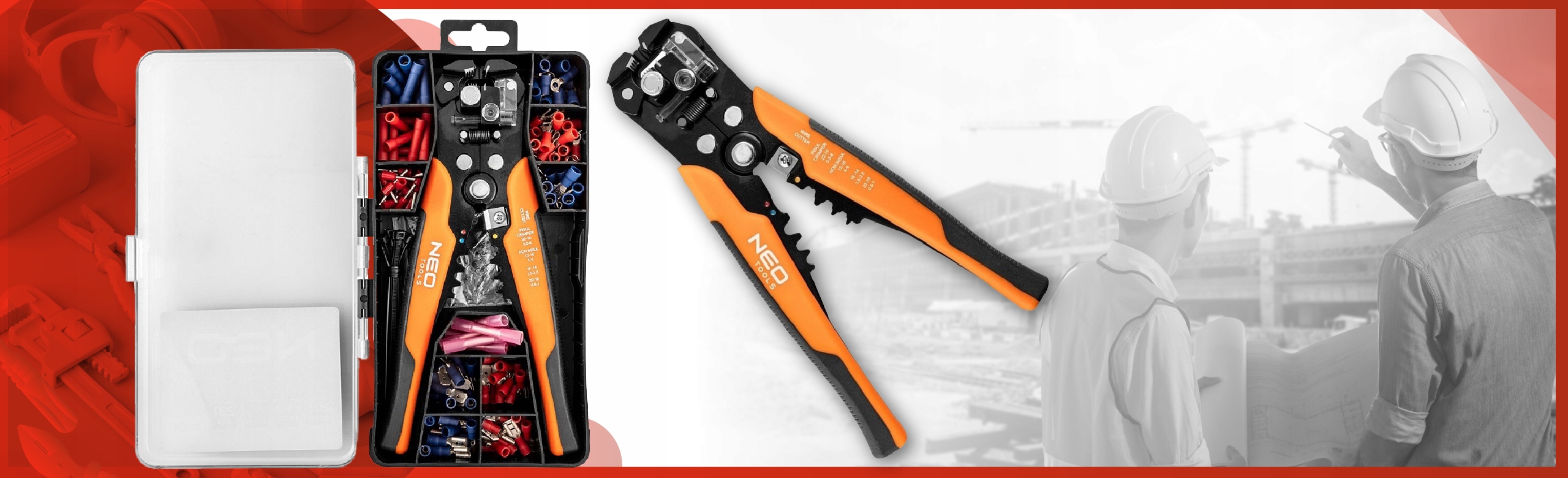 Автоматична машина для зняття ізоляції від Neo Tools — це інструмент із передніми губками. Важливо, що він має встановлений обмежувач ізоляції та практичний кабельний різак. У свою чергу, ергономічна двокомпонентна ручка TPR+PP забезпечує надійний і надійний хват.