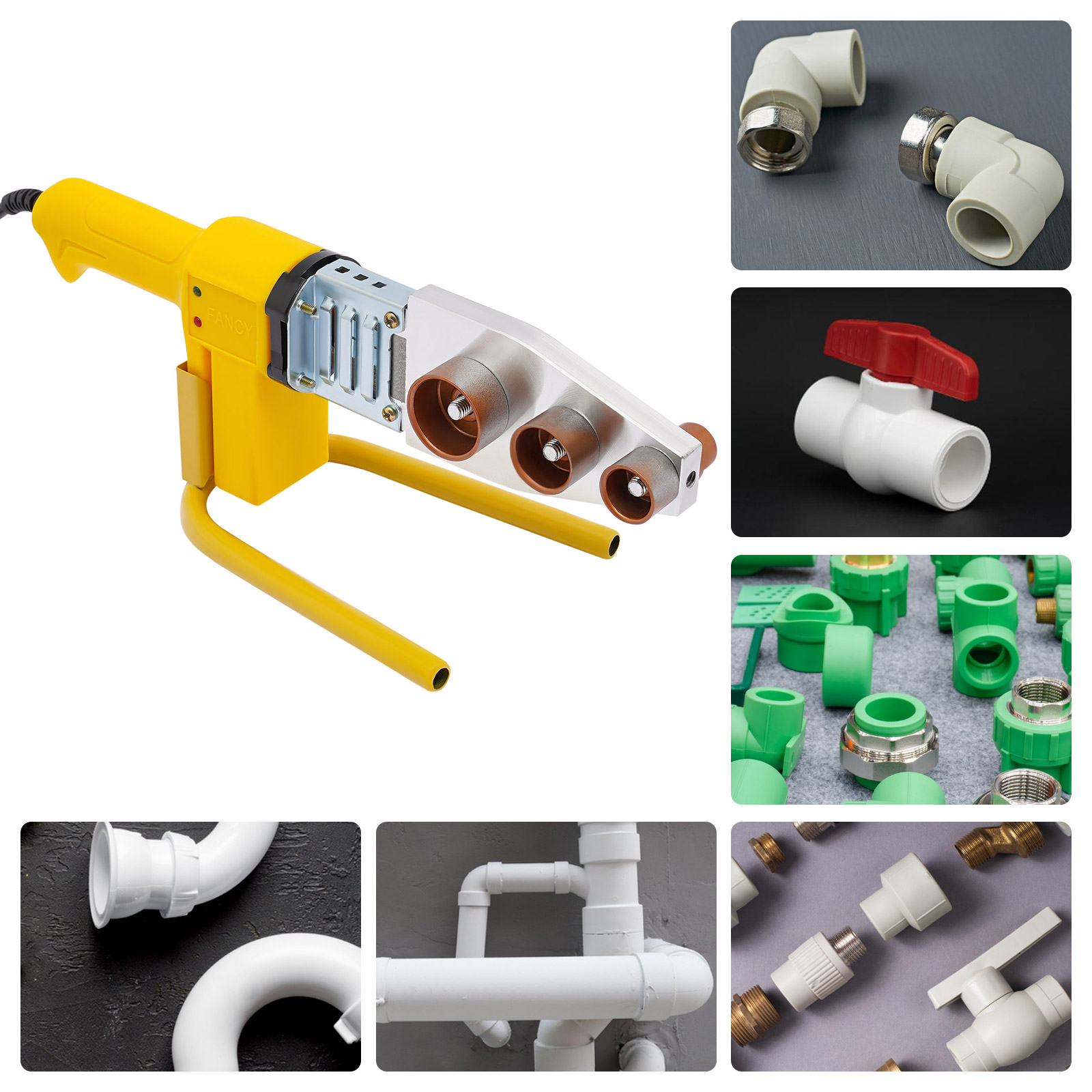 - Підходить для домашнього обслуговування, механічного обслуговування та обслуговування трубопроводів. Використовується для швидкого зварювання PPR, PB, PE та інших труб в туалетах, кухнях, офісах і трубопроводах холодної та гарячої води.