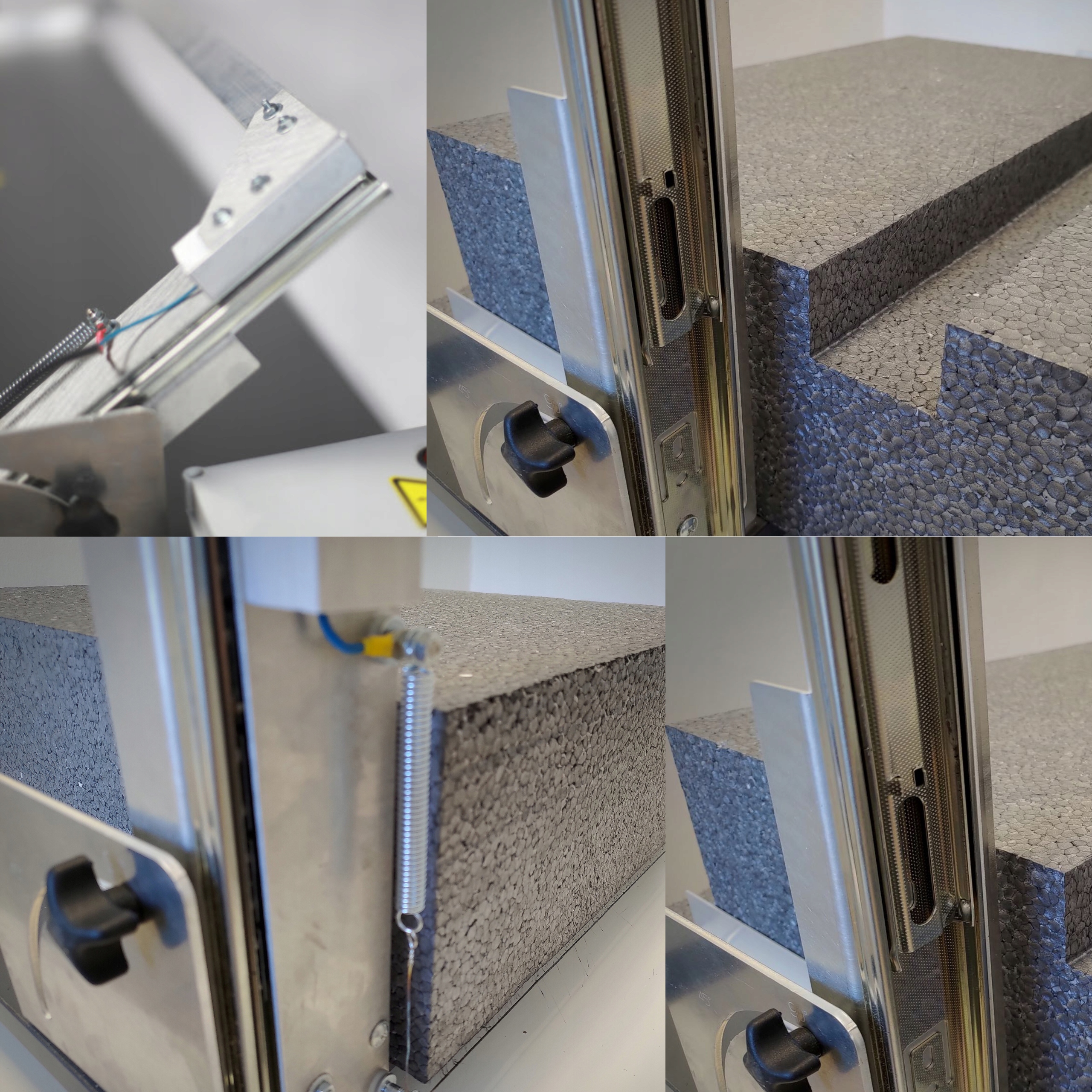 Завдяки використанню алюмінієвий упор встановлений під кутом 90 градусів до лінії різу, а також натяг ріжучого дроту з обох сторін за допомогою двох пружин, отриманий зріз характеризується точністю і точність