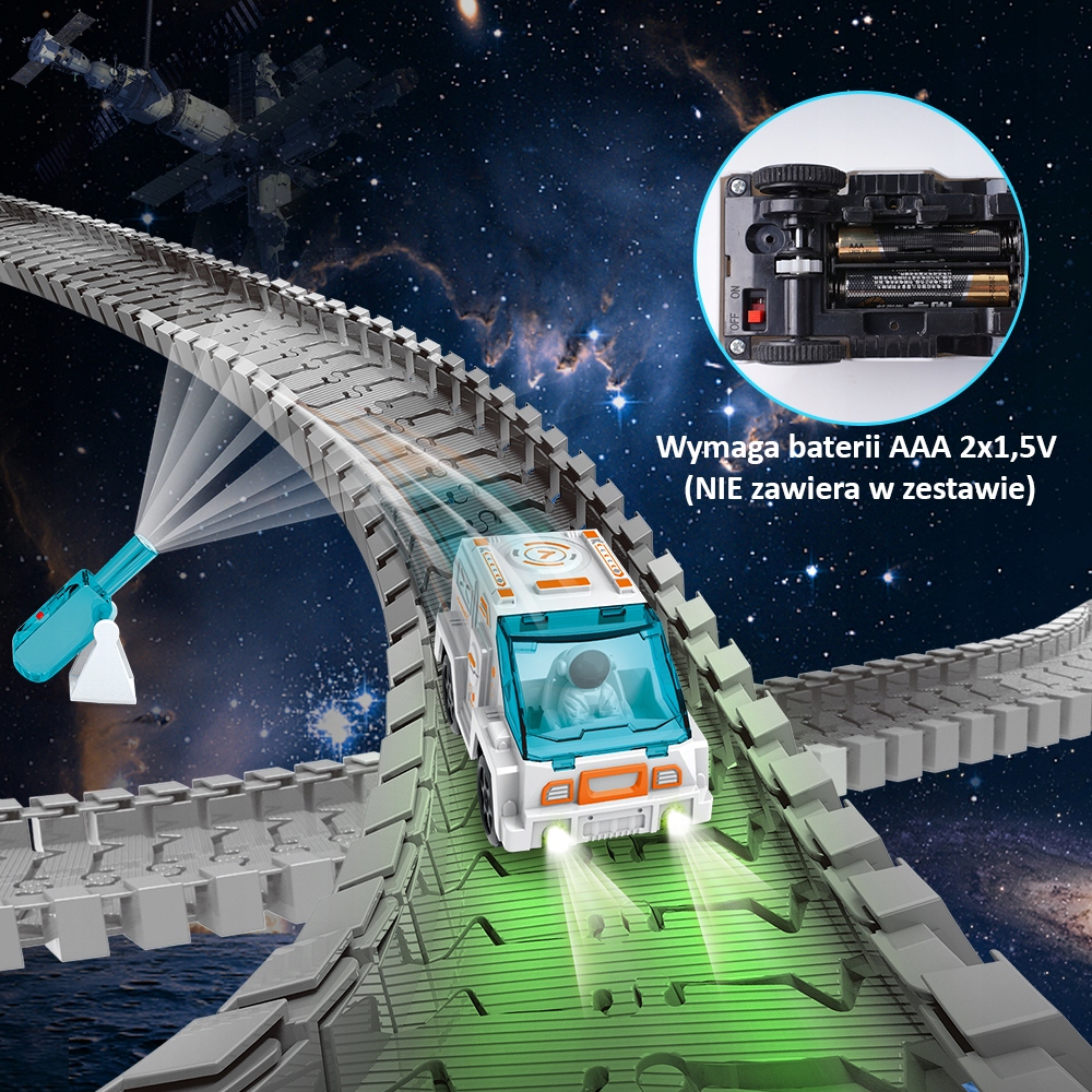 - ❤️Космічна доріжка виготовлена з екологічно чистого високоякісного пластику, який відповідає стандартам безпеки ASTM , а тому він досить довговічний. Гоночна машина, яка входить у комплект, світиться, і вона подобається всім дітям.