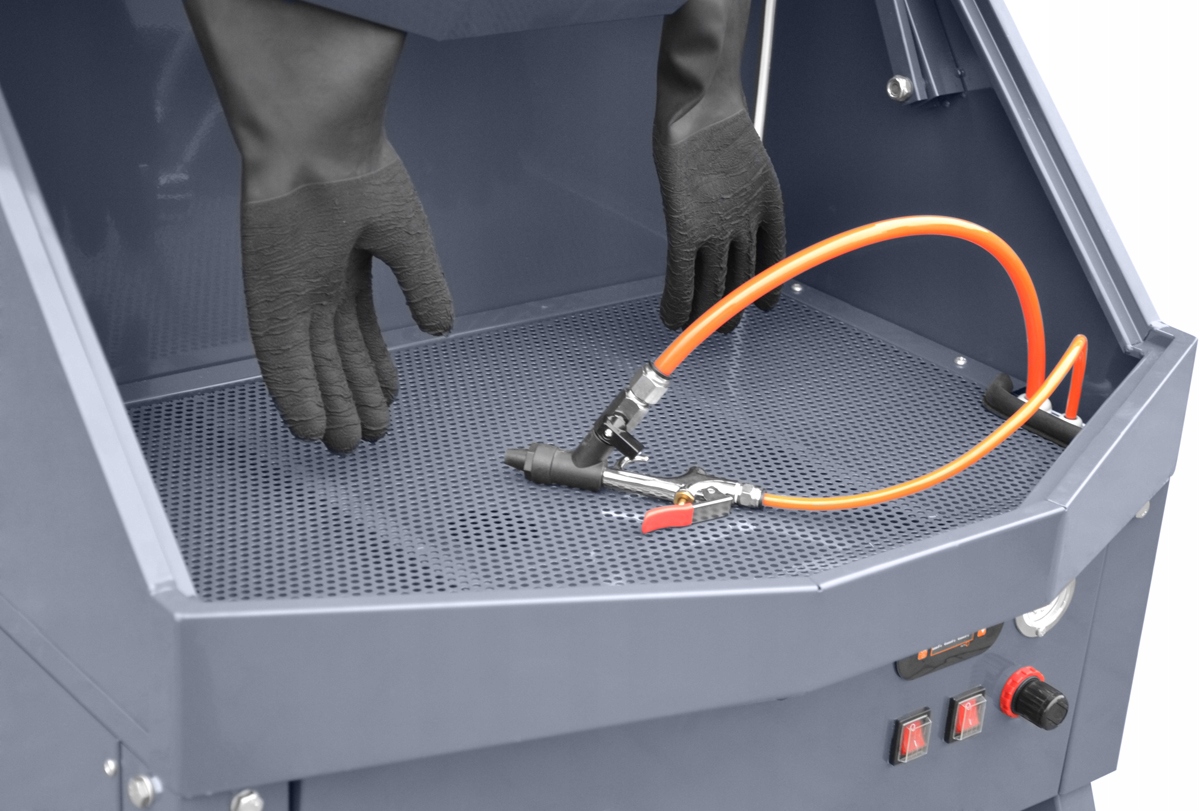 Промивання здійснюється в замкнутому контурі з використанням мийної рідини, нагрітої до температури до 70 градусів за Цельсієм. Препарат випускається з сопла пістолета під тиском до 8 бар, завдяки чому він ретельно очищає важкодоступні місця і сильно забруднені частини від нагару, жиру або масла. І температура, і рідина підвищують ефективність прання. Має регульовані ніжки, рівень регулювання.