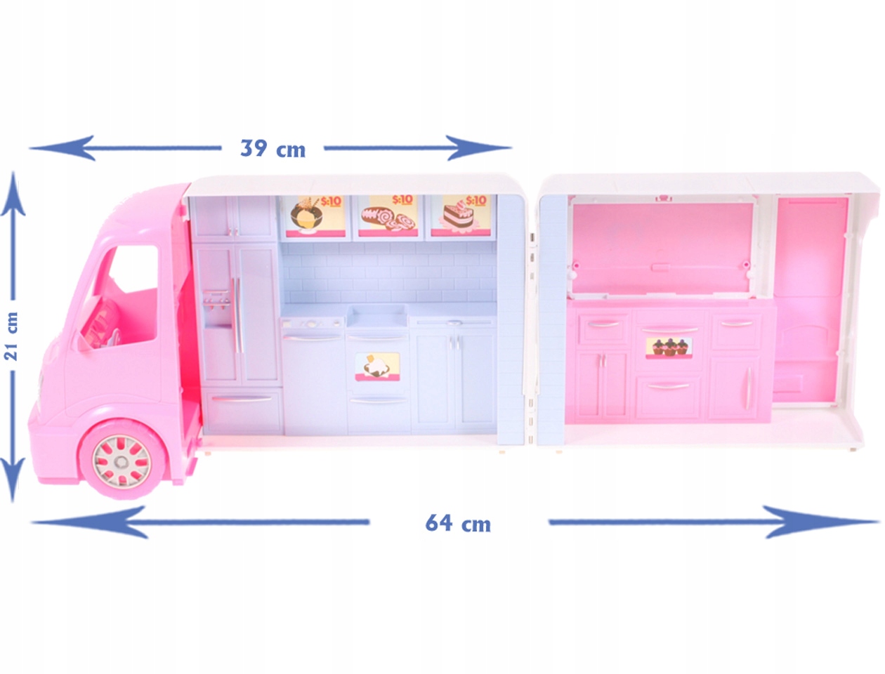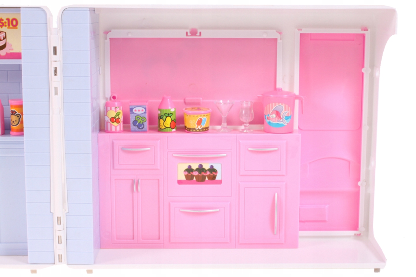 Збоку автомобіля є вікно, що відкривається, з якого можна продавати, і високі двері, що відкриваються, у які можуть поміститися високі ляльки (17,5 см).