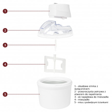 Вершкове, полуничне та шоколадне - це найпопулярніші смаки морозива, які люблять діти та дорослі. Від сьогодні ви можете приготувати їх у себе вдома. Приблизно півгодини вистачить щоб насолодитися морозивом, приготованимз улюблених і, головне, ретельно відібраних інгредієнтів. Тільки те, що натуральне. Тільки хороші добавки - ви знаєте, що їдять ваші діти та близькі. Завдяки тому, що машина завжди під рукою, ви також можете шукати унікальні, непопулярні смаки, про які ви чули або які вас цікавлять - наприклад, морозиво з буряка, селери, часнику чи креветок. Від'єднавши двигун, ви можете відразу поставити ємність з морозивом, накривши кришкою, в морозилку.