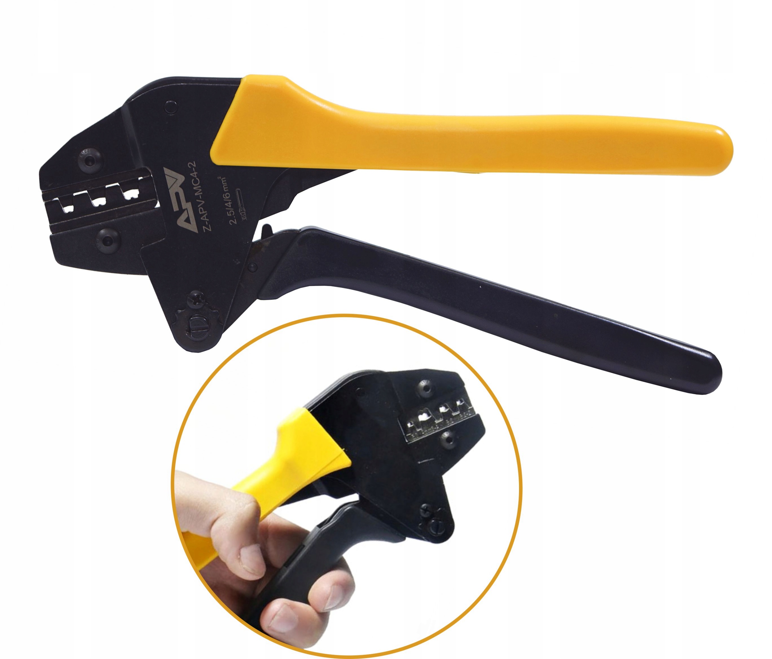 Оригінальний обтискний інструмент Z-APV-MC4-2 від APV призначений для обтиску сонячних роз’ємів типу MC4 (як штекерних, так і гніздових) на багатожильних мідних сонячних кабелях.