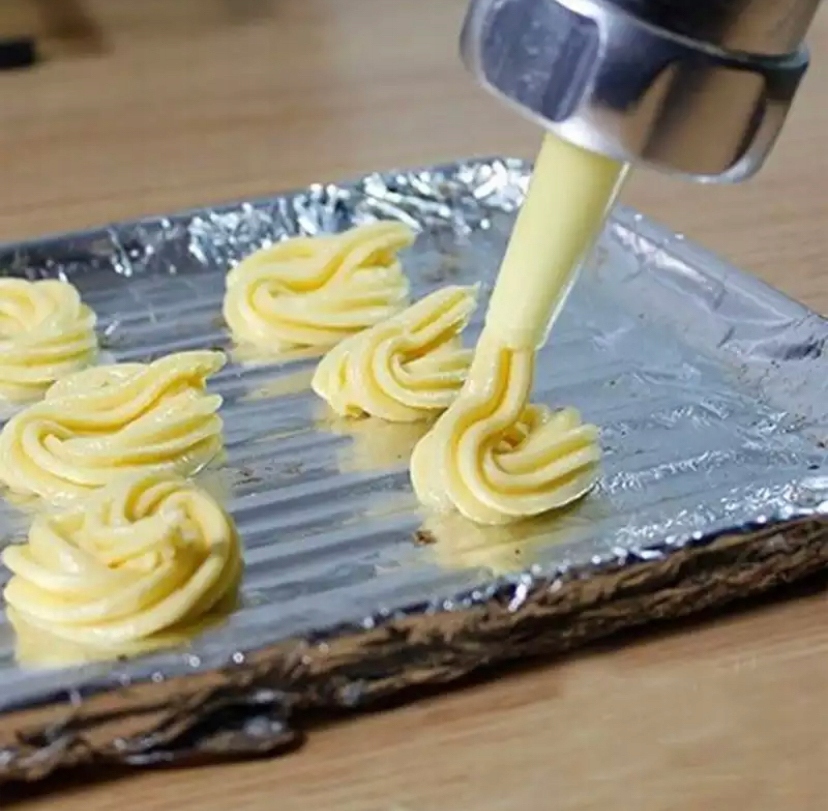 - Він також містить чотири насадки для ручного виготовлення та декорування печива.