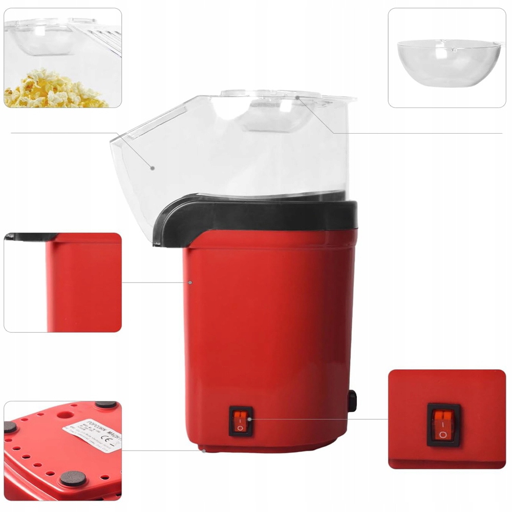 🍿Використовує електричну систему гарячого повітря для делікатного приготування без жиру, де кукурудзяні зерна нагріваються теплим повітрям, змушуючи їх вискакувати та бути готовими до вживання протягом 2-3 хвилин.