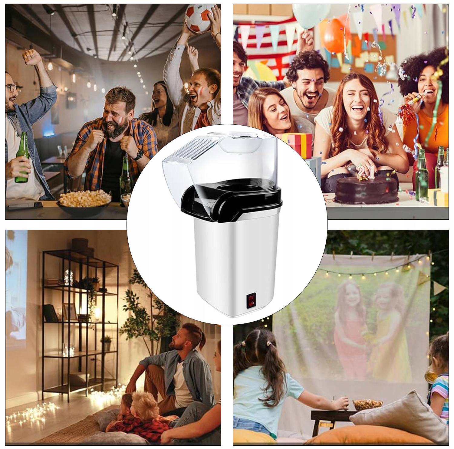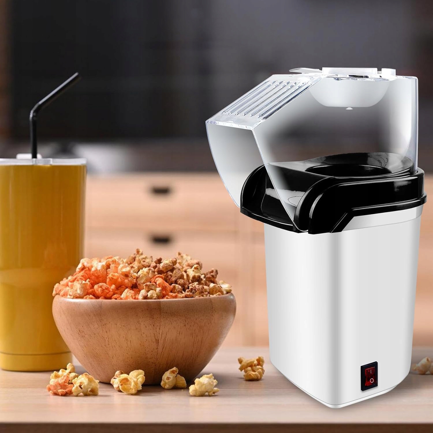 ✔ 【гаряче повітря】- Використовуйте електричну систему гарячого повітря для легкої приготування страв без жиру. Зерно нагріваються гарячим повітрям, що викликає розтріскування. Насолоджуйтесь свіжим, теплим попкорном за 2-3 хвилини