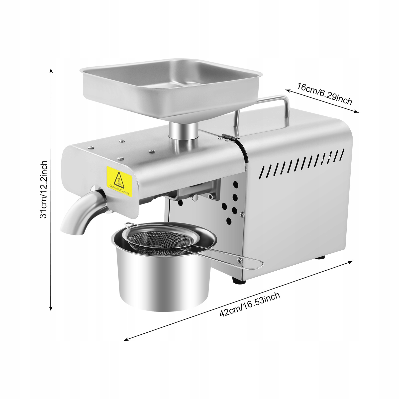 Швидкість віджиму олії: 3-6 кг / 6,61-13,22 фунтів / год. 45%
