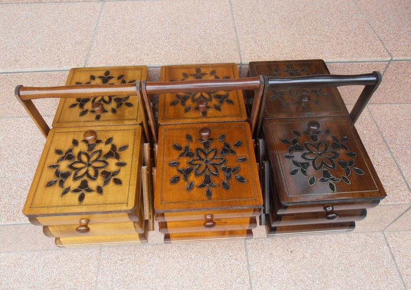 Ниторізальні машини - дерев'яні ящики, прикрашені різьбленою розеткою та інкрустацією - ручна робота.