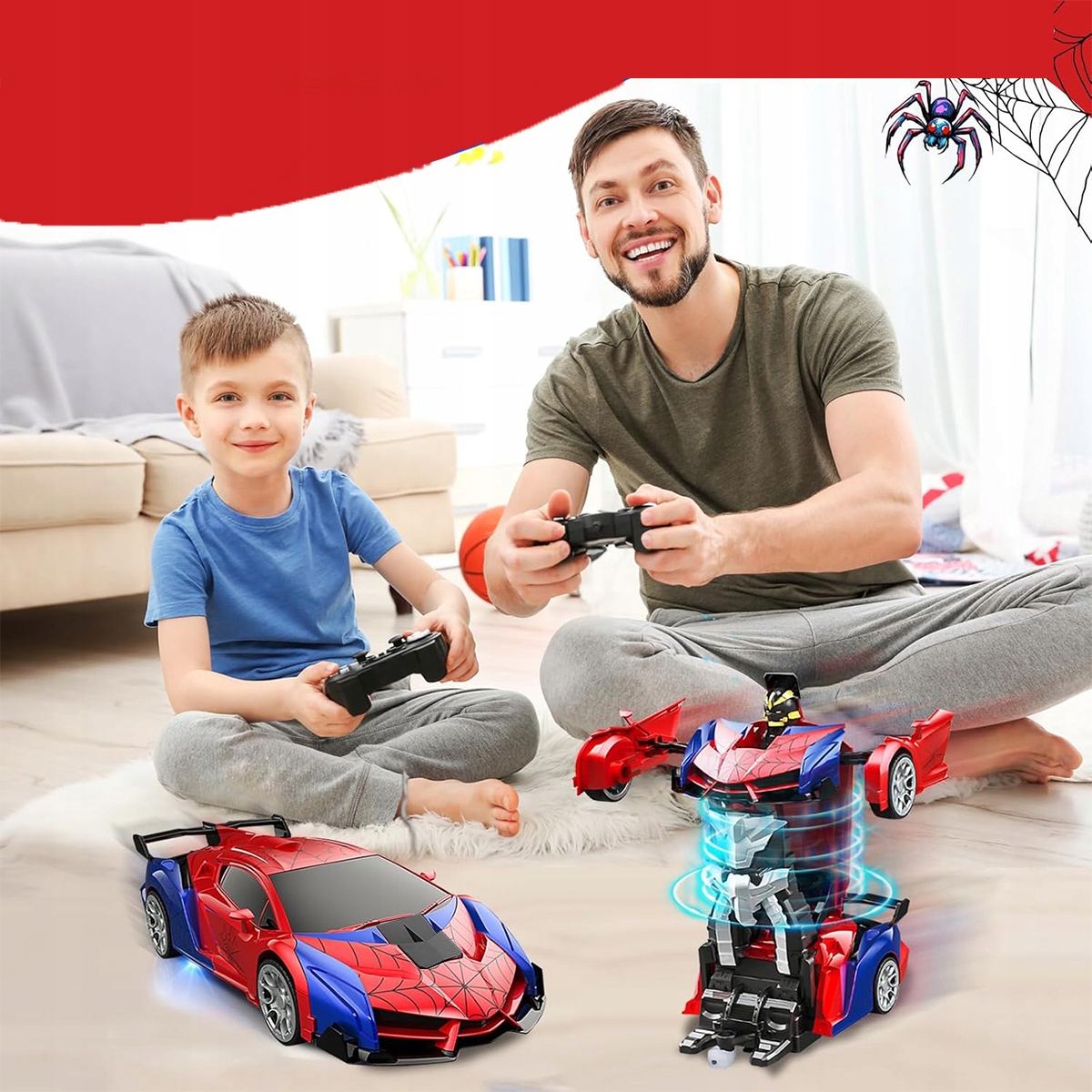 ⭐Крутий автомобіль-павук 2-в-1 з дистанційним керуванням: ця дитяча іграшка поєднує в собі автомобіль і робота з можливістю перемикатися між ними. Він також має привабливий червоно-синій дизайн у формі павука, який привертає увагу дітей і додає додаткові розваги.