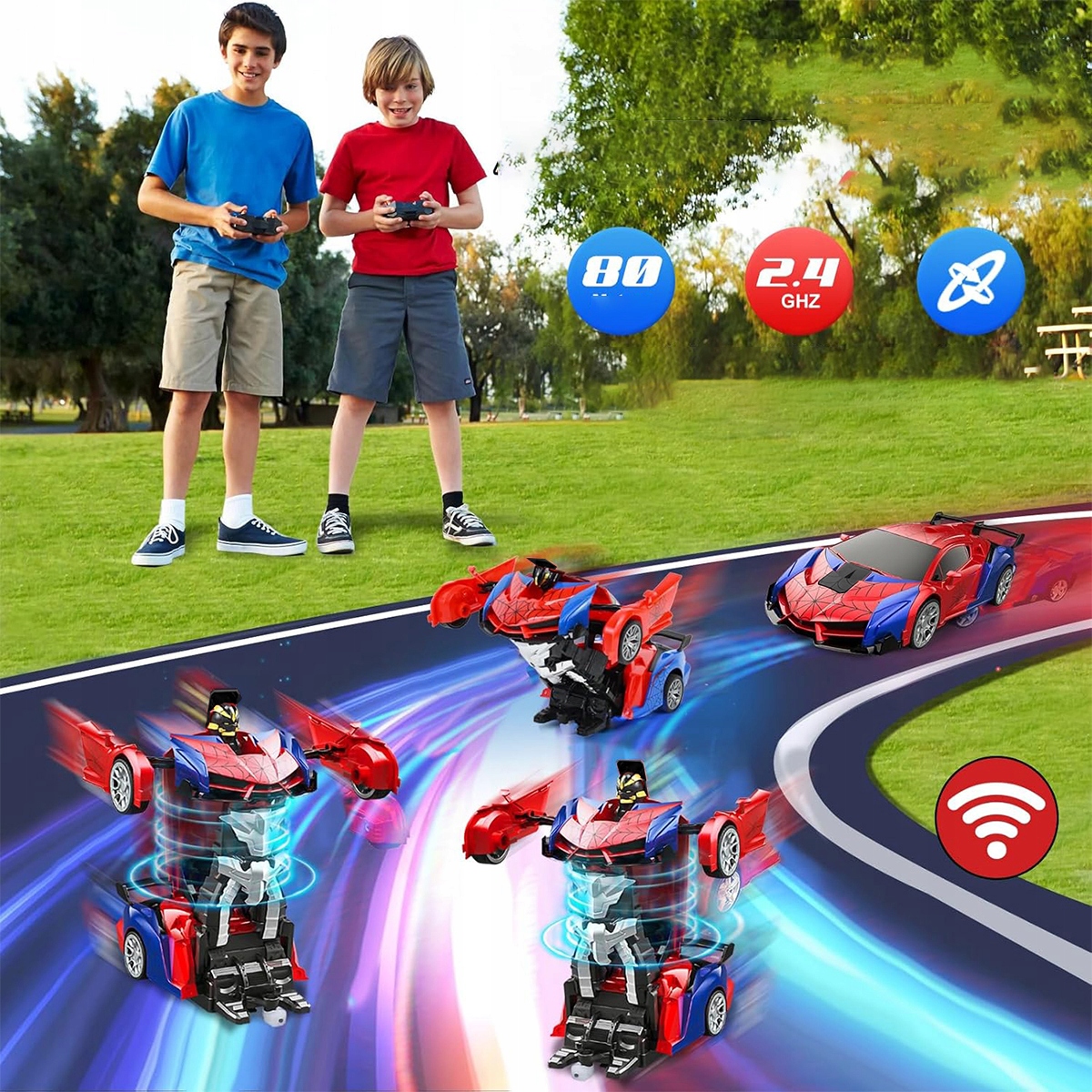 Машина на дистанційному керуванні для хлопчиків і дівчаток 3, 4, 5, 6, 7, 8+ років, робот-трансформер Spider RC 2,4 ГГц, масштаб 1:18 з дистанційним керуванням, новорічний подарунок для дітей 3-12 років (червоно-синій)