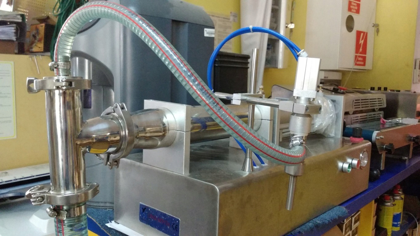 Наповнювальні машини повністю виготовлені з нержавіючої сталі. Вони доступні у двох основних версіях, тобто для рідких рідин із консистенцією води (соки, шампуні тощо) або для густих рідин (версії GCG для, наприклад, кетчупу, олії).