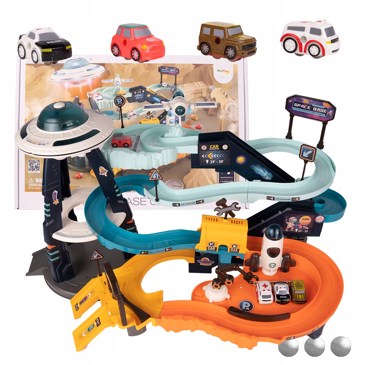 ✅ Космічна база з трасою та автомобілями – ідеальний вибір для кожного шанувальника автомобільних гірок та космосу!