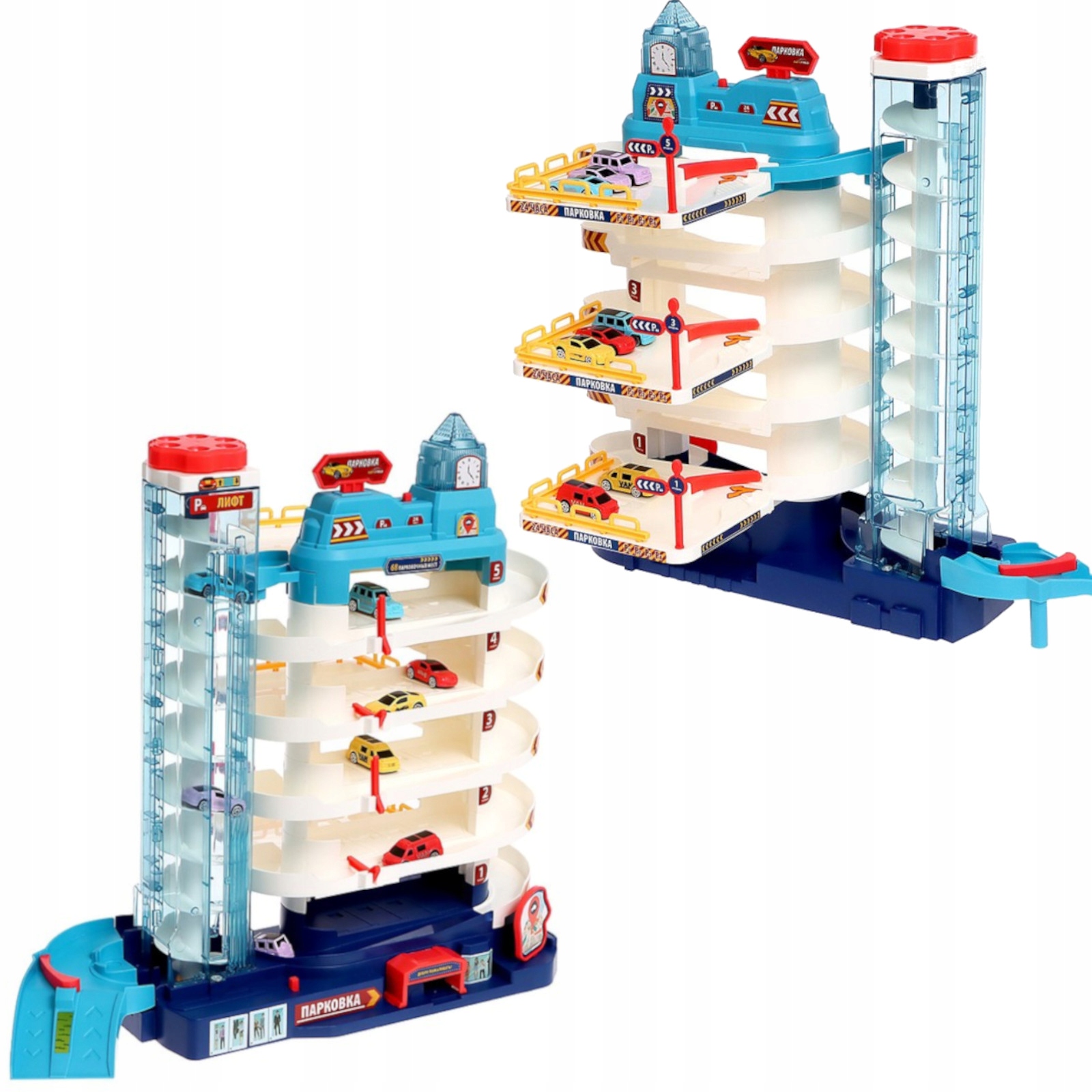 ➡️ Різноманітність іграшок -аж 5 рівнів, численні місця для паркування, повороти, під’їзди, шлагбауми – ця різноманітність додає грі задоволення та розважатиме вас надовго набридне. Машини, що рухаються в самому верху, йдуть до самого низу траси, охоплюючи всі 5 рівнів, а в самому низу шикуються в чергу, щоб знову зайти в ліфт або, відкривши шлагбаум, вони виїжджають з траси на килимок.